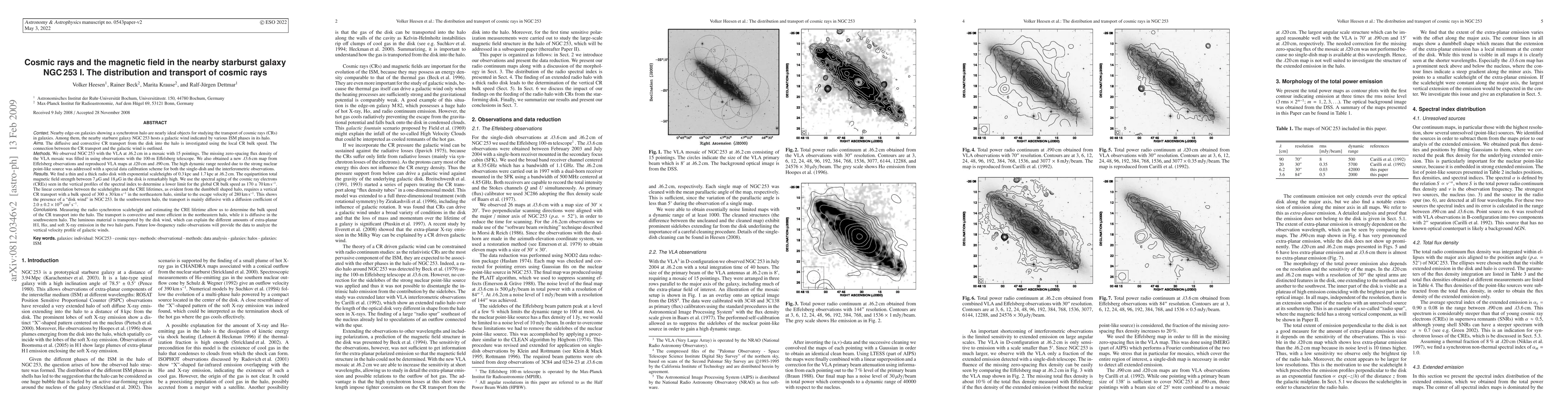 The diffusive and convective CR transport in NGC 253 from the disk into the halo is investigated using the local CR bulk speed. The connection between the CR transport and the galactic wind is outlined. We observed NGC 253 with the VLA at lambda 6.2 cm in a mosaic with 15 pointings. The missing zero-spacing flux density of the VLA mosaic was filled in using observations with the 100-m Effelsberg telescope. We also obtained a new lambda 3.6 cm map from Effelsberg observations and reproduced VLA maps at lambda 20 cm and lambda 90 cm. We find a thin and a thick radio disk with exponential scaleheights of 0.3 kpc and 1.7 kpc at lambda 6.2 cm. The equipartition total magnetic field strength between 7 micro G and 18 micro G in the disk is remarkably high. We use the spectral aging of the cosmic ray electrons (CREs) seen in the vertical profiles of the spectral index to determine a lower limit for the global CR bulk speed as (170+/-70) km/s. The linear correlation between the scaleheights and the CRE lifetimes, as evident from the dumbbell shaped halo, requires a vertical CR transport with a bulk speed of (300+/-30) km/s in the northeastern halo, similar to the escape velocity of 280 km/s. This shows the presence of a "disk wind" in NGC253. In the southwestern halo, the transport is mainly diffusive with a diffusion coefficient of (2.0+/-0.2) 10E29 cm^2 s^-1. In the northeastern halo, the CR transport is convective and more efficient than in the southwestern halo. The luminous material is transported by the disk wind, which can explain the different amounts of extra-planar HI, Halpha, and soft X-ray emission in the two halo parts. Future low-frequency radio observations will provide the data to analyze the vertical velocity profile of galactic winds.