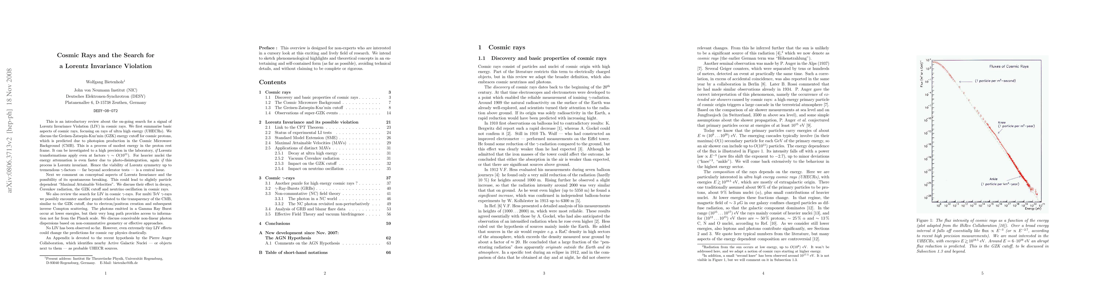 This paper reviews the search for Lorentz Invariance Violation (LIV) in cosmic rays, focusing on ultra-high energy cosmic rays, and discusses the implications of LIV on the Greisen-Zatsepin-Kuz'min cutoff and cosmic gamma-rays, noting that no LIV has been observed yet, but its detection could drastically alter predictions in cosmic ray physics.