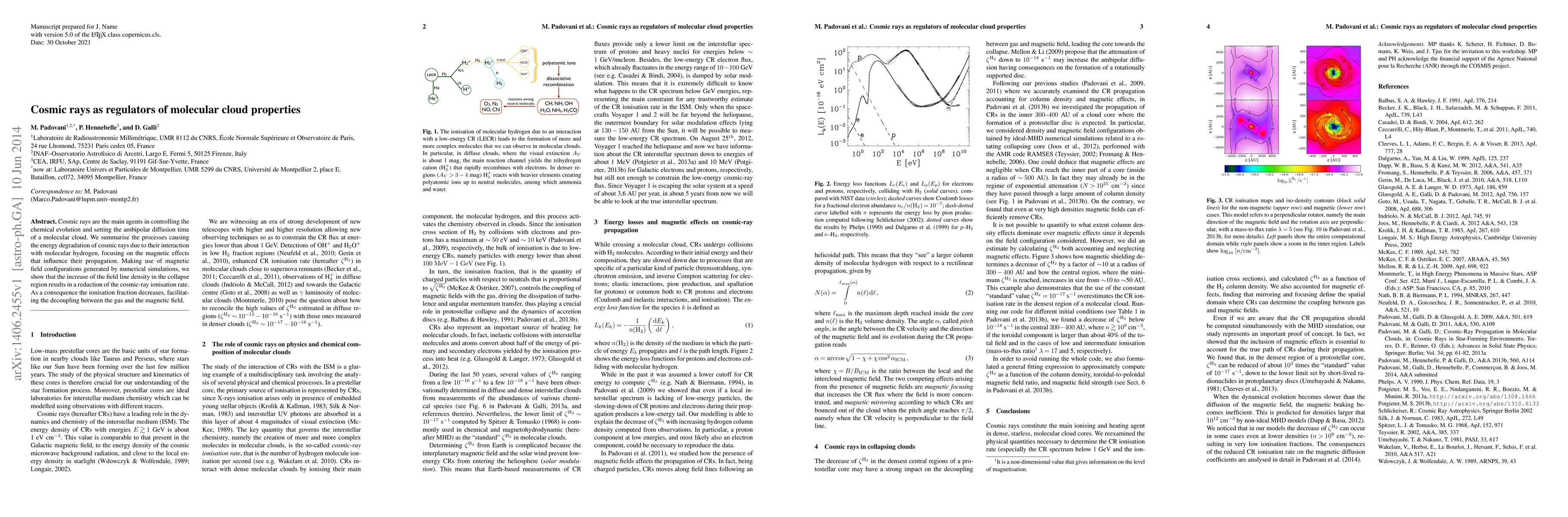 Cosmic rays regulate the chemical evolution and ambipolar diffusion time in molecular clouds by influencing their ionisation rate. Increased magnetic field line density in collapsing regions reduces cosmic-ray ionisation, leading to a lower ionisation fraction and decoupling between gas and magnetic field.