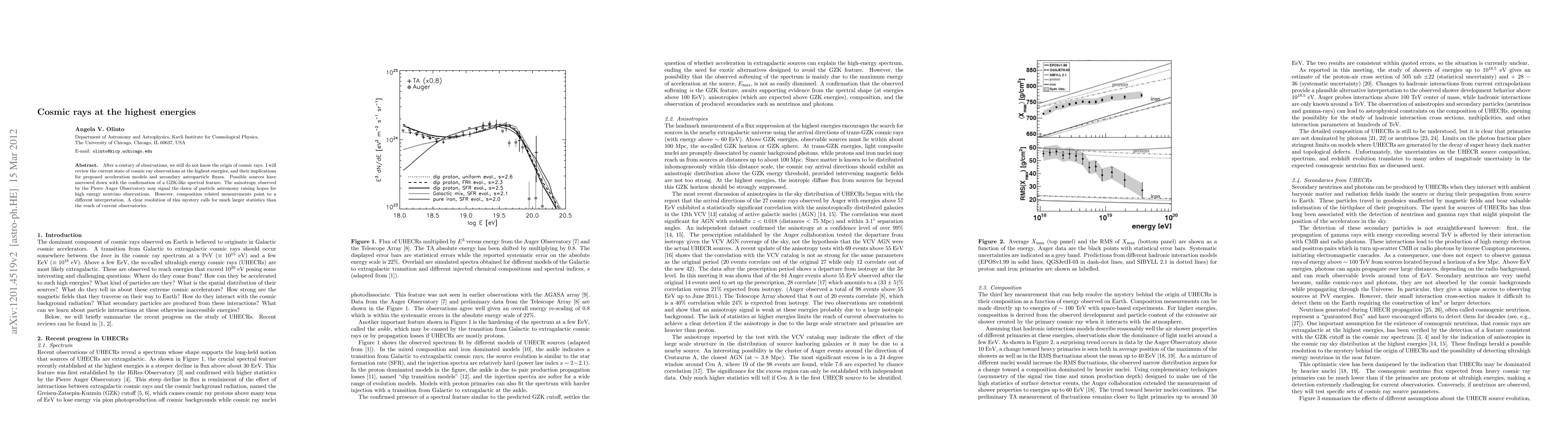 The research reviews the current state of cosmic ray observations at the highest energies, focusing on implications for proposed acceleration models and secondary astroparticle fluxes.