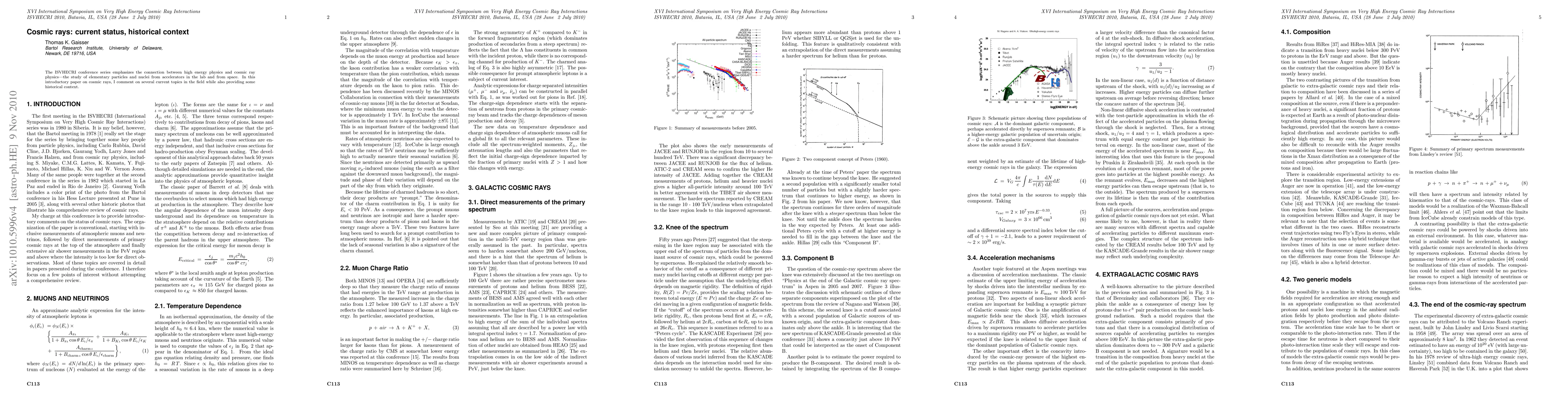 This paper provides an overview of cosmic rays, discussing current topics while also tracing their historical context, emphasizing the link between laboratory-based high-energy physics and cosmic ray research.