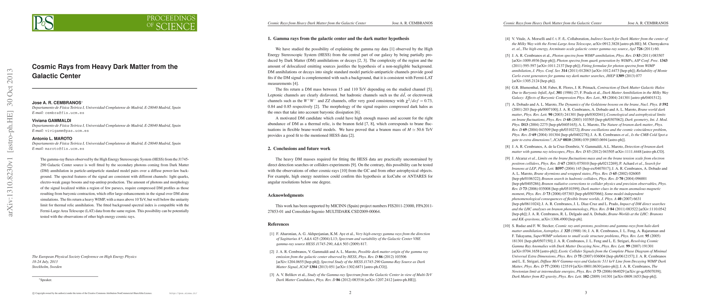 The study suggests that cosmic rays from heavy dark matter particles annihilating in the galactic center could explain the observed gamma-ray fluxes, with masses above 10 TeV and implications for testing with future observations.