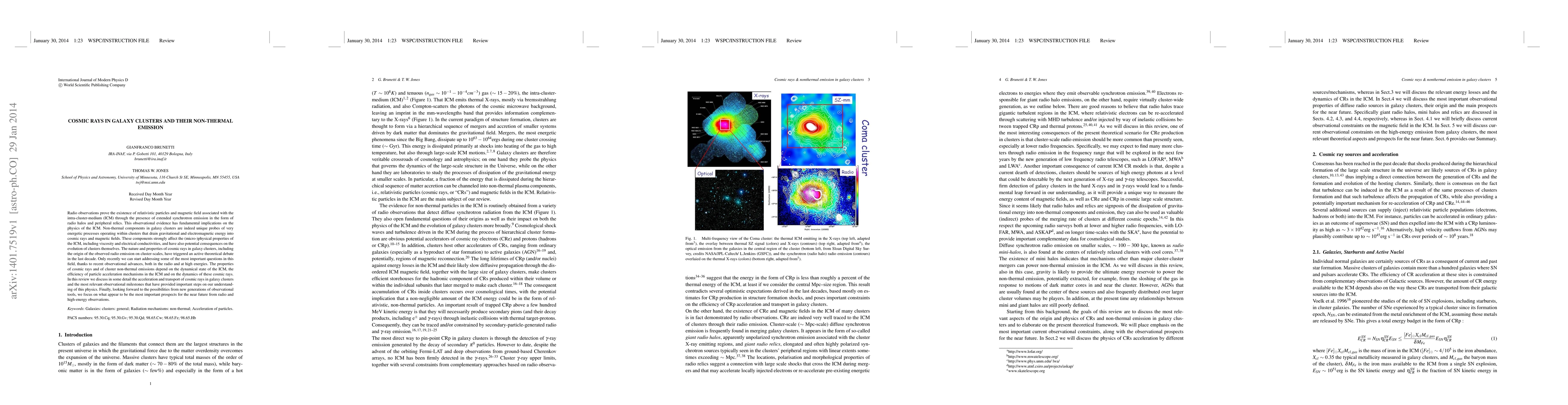 This paper reviews the role of cosmic rays and non-thermal emissions in galaxy clusters, emphasizing their origin and impact on the intra-cluster medium's physical properties. It highlights recent observational advances that have shed light on the acceleration and transport mechanisms of cosmic rays, and discusses future prospects for further understanding through next-generation radio and high-energy observatories.