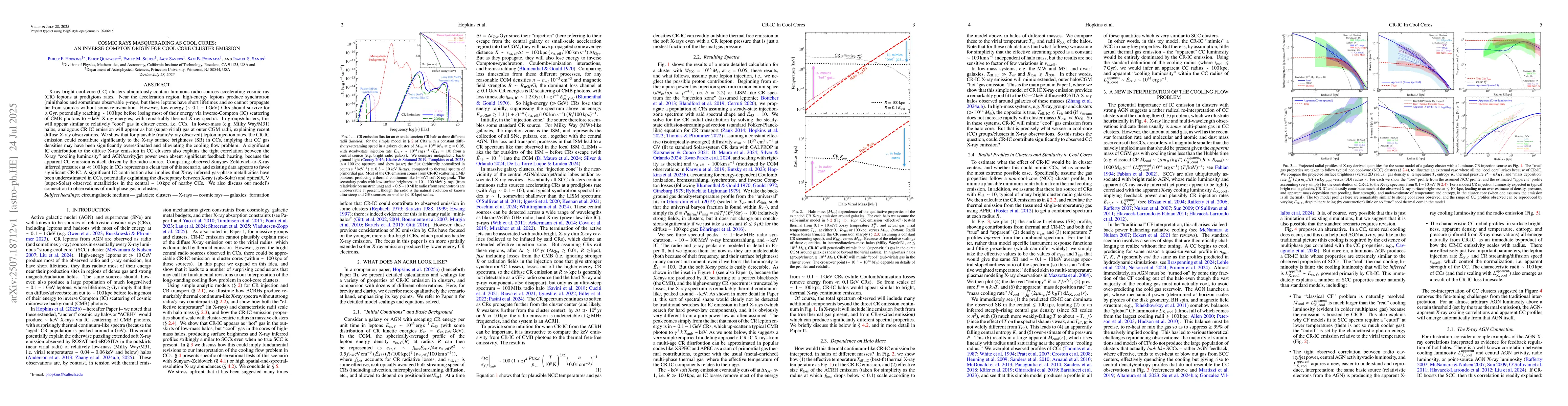 X-ray bright cool-core (CC) clusters contain luminous radio sources accelerating cosmic ray (CR) leptons at prodigious rates. Near the acceleration region, high-energy leptons produce synchrotron (mini)halos and sometimes observable gamma rays, but these leptons have short lifetimes and so cannot propagate far from sources without some rejuvenation. However, low-energy (~0.1-1 GeV) CRs should survive for >Gyr, potentially reaching ~100 kpc before losing energy via inverse-Compton (IC) scattering of CMB photons to keV X-ray energies, with remarkably thermal X-ray spectra. In groups/clusters, this will appear similar to relatively 'cool' gas in cluster cores (i.e. CCs). In lower-mass (e.g. Milky Way/M31) halos, analogous CR IC emission will appear as hot (super-virial) gas at outer CGM radii, explaining recent diffuse X-ray observations. We show that for plausible (radio/gamma-ray observed) lepton injection rates, the CR-IC emission could contribute significantly to the X-ray surface brightness (SB) in CCs, implying that CC gas densities may have been overestimated and alleviating the cooling flow problem. A significant IC contribution to diffuse X-ray emission in CC clusters also explains the tight correlation between the X-ray 'cooling luminosity' and AGN/cavity/jet power, because the apparent CC emission is itself driven by the radio source. Comparing observed Sunyaev Zeldovich to X-ray inferred pressures at $\ll 100$ kpc in CCs represents a clean test of this scenario, and existing data appears to favor significant CR-IC. A significant IC contribution also implies that X-ray inferred gas-phase metallicities have been underestimated in CCs, potentially explaining the discrepancy between X-ray (sub-Solar) and optical/UV (super-Solar) observed metallicities in the central ~10 kpc of nearby CCs. We also discuss the model's connection to observations of multiphase gas in clusters.