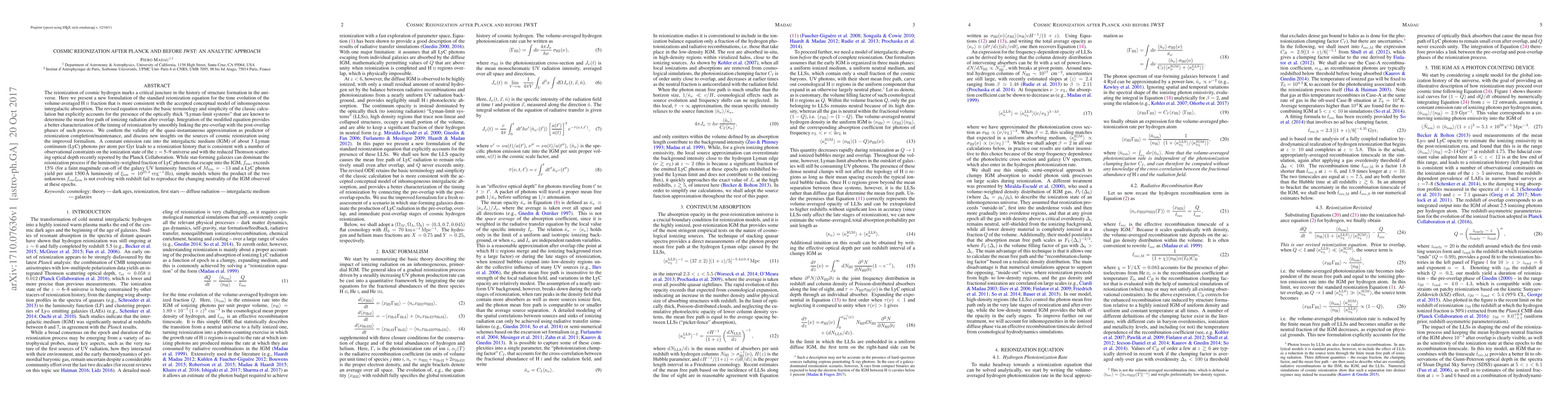 The paper introduces an analytical approach to the reionization equation that explicitly considers LLSs, providing a more accurate description of reionization's progression.