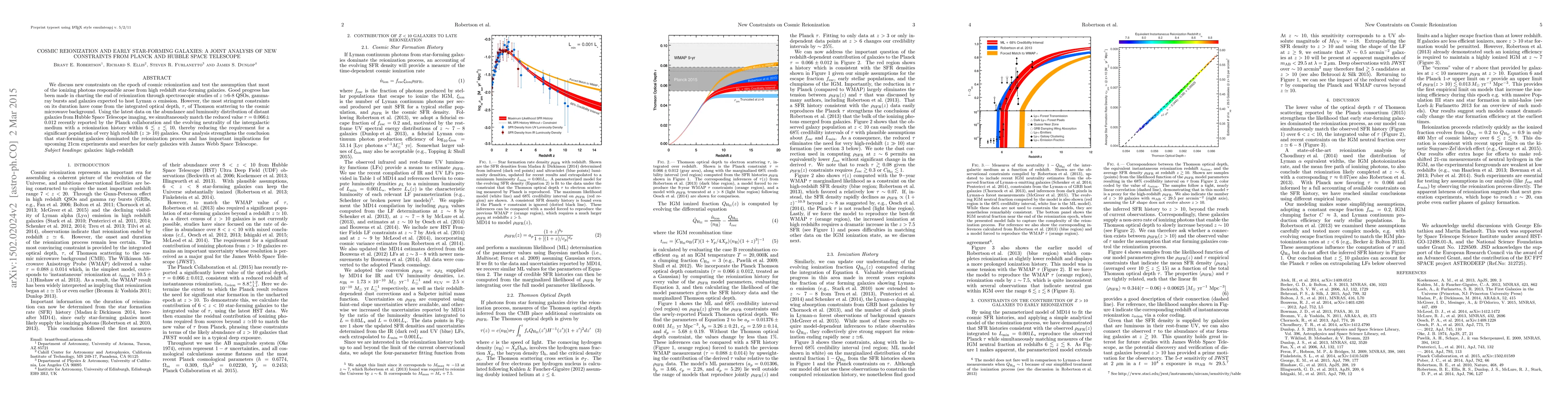 This paper provides new constraints on cosmic reionization, showing that star-forming galaxies at redshifts 6 <~ z <~ 10 were the primary source of ionizing photons, reducing the need for very high redshift galaxies. The findings are based on Planck and Hubble data, supporting the evolving neutrality of the intergalactic medium.
