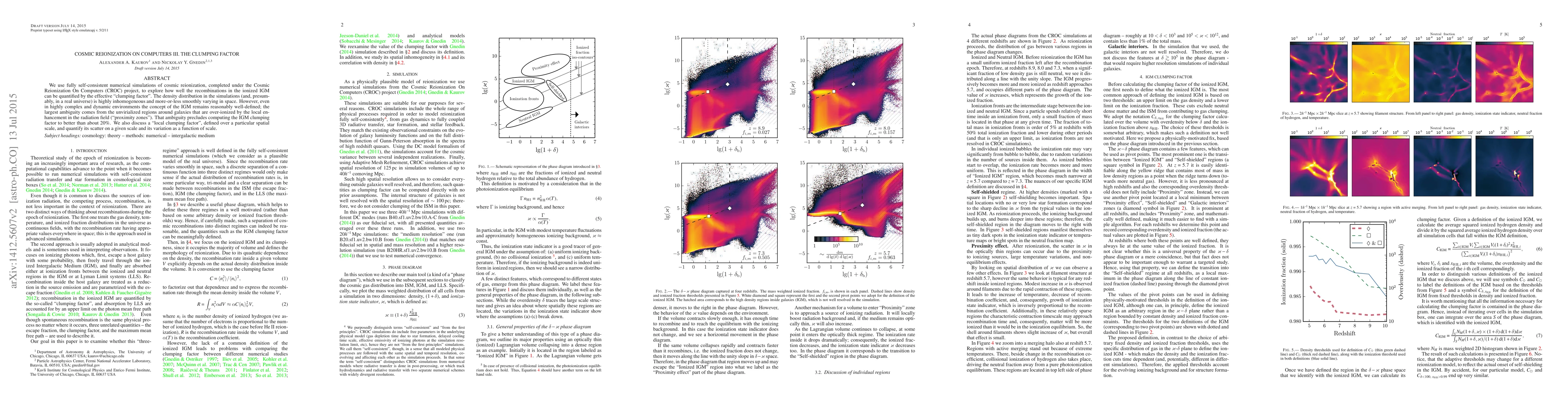 This paper uses numerical simulations from the CROC project to analyze the effective "clumping factor" during cosmic reionization, revealing that the recombinations in the ionized intergalactic medium (IGM) are inhomogeneously distributed. The study finds that while the IGM concept remains well-defined, the clumping factor can only be computed with an accuracy of about 20% due to ambiguities in over-ionized regions around galaxies.