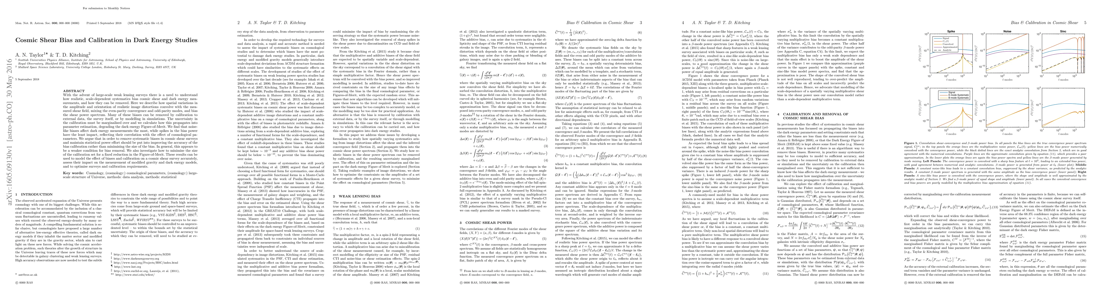 With the advent of large-scale weak lensing surveys there is a need to understand how realistic, scale-dependent systematics bias cosmic shear and dark energy measurements, and how they can be removed. Here we describe how spatial variations in the amplitude and orientation of realistic image distortions convolve with the measured shear field, mixing the even-parity convergence and odd-parity modes, and bias the shear power spectrum. Many of these biases can be removed by calibration to external data, the survey itself, or by modelling in simulations. The uncertainty in the calibration must be marginalised over and we calculate how this propagates into parameter estimation, degrading the dark energy Figure-of-Merit. We find that noise-like biases affect dark energy measurements the most, while spikes in the bias power have the least impact, reflecting their correlation with the effect of cosmological parameters. We argue that in order to remove systematic biases in cosmic shear surveys and maintain statistical power effort should be put into improving the accuracy of the bias calibration rather than minimising the size of the bias. In general, this appears to be a weaker condition for bias removal. We also investigate how to minimise the size of the calibration set for a fixed reduction in the Figure-of-Merit. These results can be used to model the effect of biases and calibration on a cosmic shear survey accurately, assess their impact on the measurement of modified gravity and dark energy models, and to optimise surveys and calibration requirements.