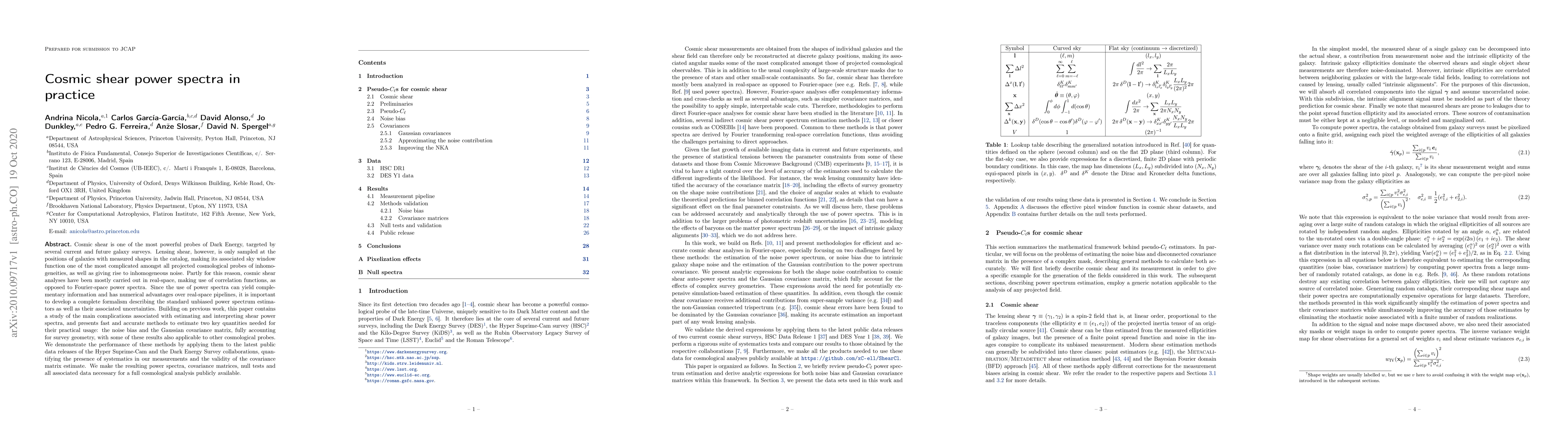 Cosmic shear is one of the most powerful probes of Dark Energy, targeted by several current and future galaxy surveys. Lensing shear, however, is only sampled at the positions of galaxies with measured shapes in the catalog, making its associated sky window function one of the most complicated amongst all projected cosmological probes of inhomogeneities, as well as giving rise to inhomogeneous noise. Partly for this reason, cosmic shear analyses have been mostly carried out in real-space, making use of correlation functions, as opposed to Fourier-space power spectra. Since the use of power spectra can yield complementary information and has numerical advantages over real-space pipelines, it is important to develop a complete formalism describing the standard unbiased power spectrum estimators as well as their associated uncertainties. Building on previous work, this paper contains a study of the main complications associated with estimating and interpreting shear power spectra, and presents fast and accurate methods to estimate two key quantities needed for their practical usage: the noise bias and the Gaussian covariance matrix, fully accounting for survey geometry, with some of these results also applicable to other cosmological probes. We demonstrate the performance of these methods by applying them to the latest public data releases of the Hyper Suprime-Cam and the Dark Energy Survey collaborations, quantifying the presence of systematics in our measurements and the validity of the covariance matrix estimate. We make the resulting power spectra, covariance matrices, null tests and all associated data necessary for a full cosmological analysis publicly available.