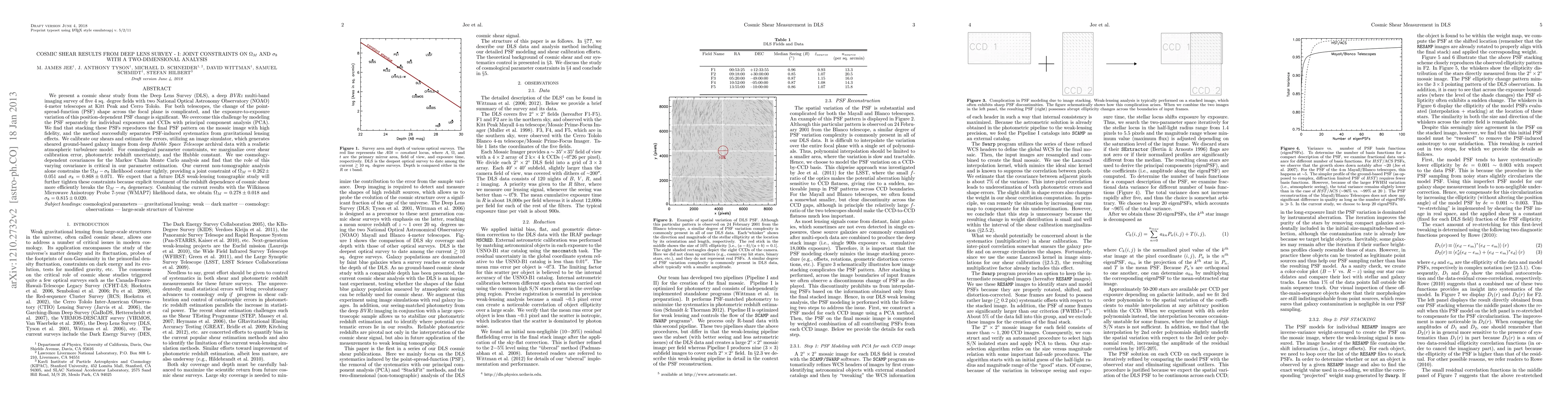 This study uses cosmic shear from the Deep Lens Survey to constrain cosmological parameters like omega_m and sigma_8, with a tight joint constraint of omega_m = 0.262 +/- 0.051 and sigma_8 = 0.868 +/- 0.071.