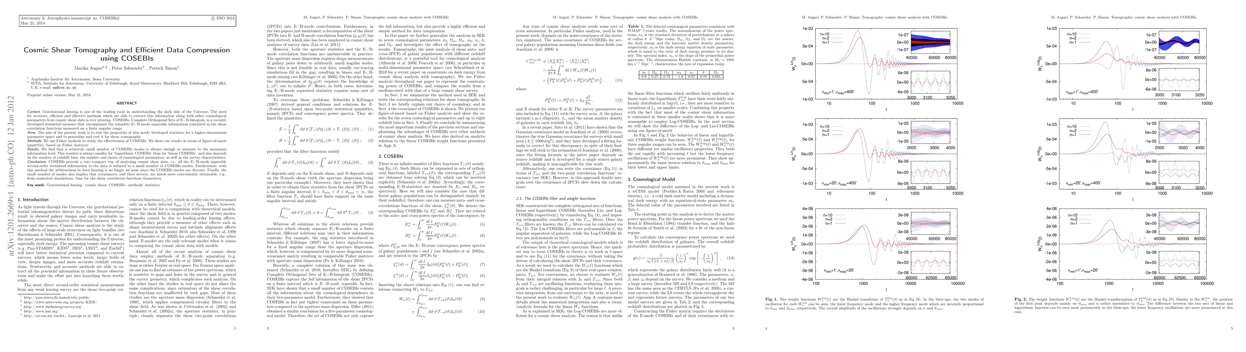 Context. Gravitational lensing is one of the leading tools in understanding the dark side of the Universe. The need for accurate, efficient and effective methods which are able to extract this information along with other cosmological parameters from cosmic shear data is ever growing. COSEBIs, Complete Orthogonal Sets of E-/B-Integrals, is a recently developed statistical measure that encompasses the complete E-/B-mode separable information contained in the shear correlation functions measured on a finite angular range. Aims. The aim of the present work is to test the properties of this newly developed statistics for a higher-dimensional parameter space and to generalize and test it for shear tomography. Methods. We use Fisher analysis to study the effectiveness of COSEBIs. We show our results in terms of figure-of-merit quantities, based on Fisher matrices. Results. We find that a relatively small number of COSEBIs modes is always enough to saturate to the maximum information level. This number is always smaller for 'logarithmic COSEBIs' than for 'linear COSEBIs', and also depends on the number of redshift bins, the number and choice of cosmological parameters, as well as the survey characteristics. Conclusions. COSEBIs provide a very compact way of analyzing cosmic shear data, i.e., all the E-/B-mode separable second-order statistical information in the data is reduced to a small number of COSEBIs modes. Furthermore, with this method the arbitrariness in data binning is no longer an issue since the COSEBIs modes are discrete. Finally, the small number of modes also implies that covariances, and their inverse, are much more conveniently obtainable, e.g., from numerical simulations, than for the shear correlation functions themselves.