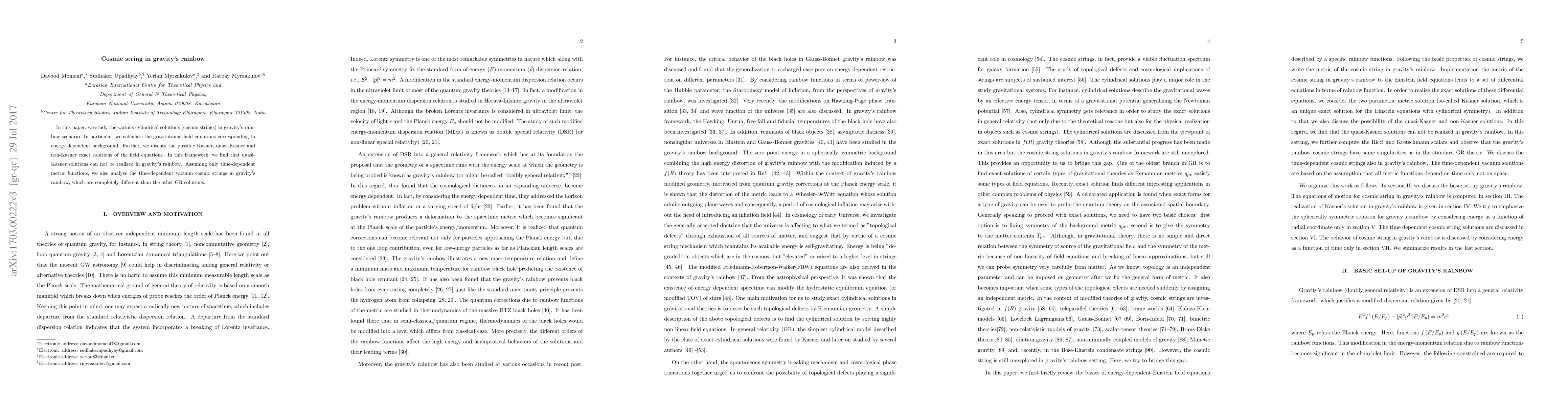 The work introduces a novel approach to studying cosmic strings under gravity's rainbow, revealing that quasi-Kasner solutions are not viable and time-dependent vacuum cosmic strings differ from GR solutions.