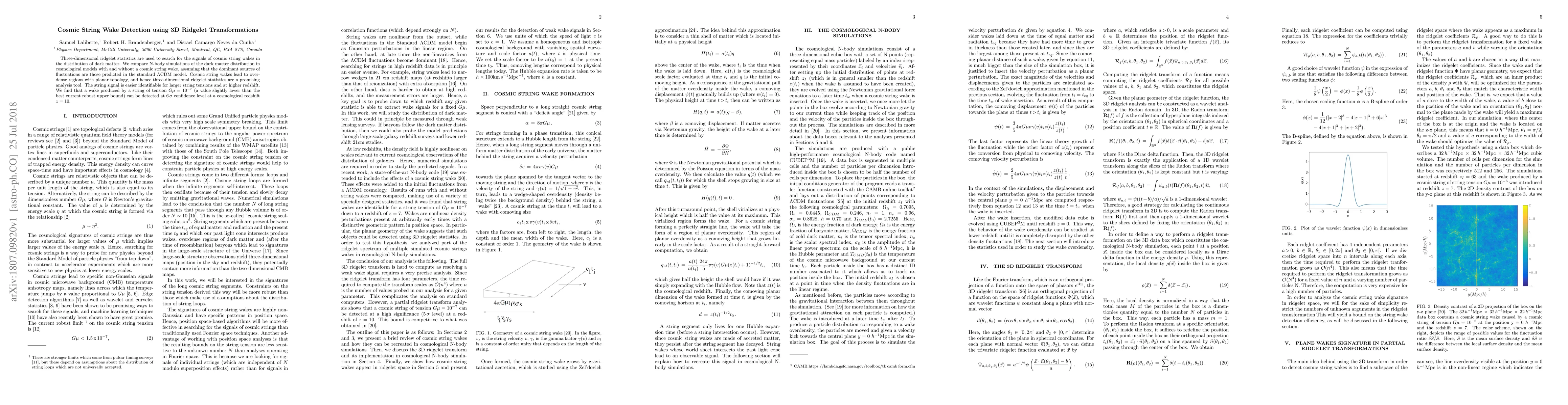 This paper uses 3D ridgelet transformations to detect cosmic string wakes in dark matter distributions, comparing N-body simulations with and without string wakes. It finds that wakes from strings with tension $G\mu = 10^{-7}$ can be detected at $6 \, \sigma$ confidence at redshift $z = 10$.
