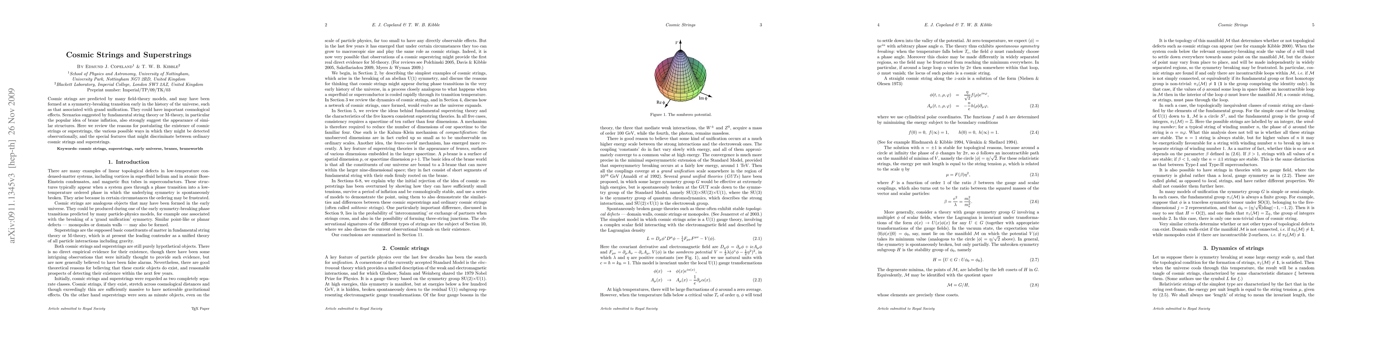 This paper reviews the theoretical basis for cosmic strings and superstrings, exploring their potential formation during early universe phase transitions and their detection methods, while distinguishing between the characteristics of cosmic strings and superstrings within the context of string theory and M-theory.