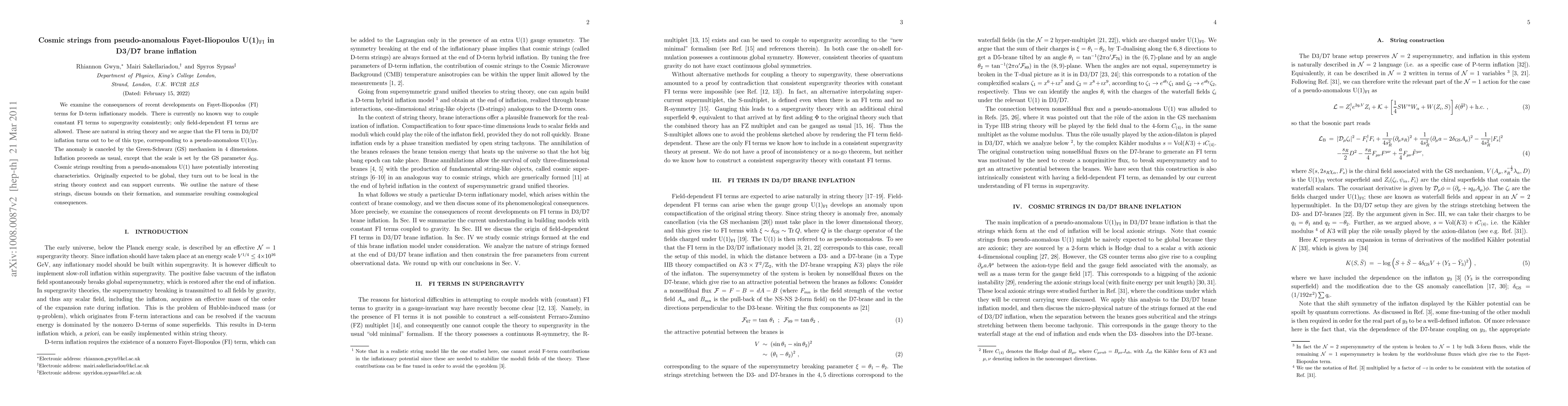 Researchers explore cosmic strings from pseudo-anomalous Fayet-Iliopoulos U(1) in D3/D7 brane inflation, finding they can support currents and have local characteristics, with implications for cosmology.