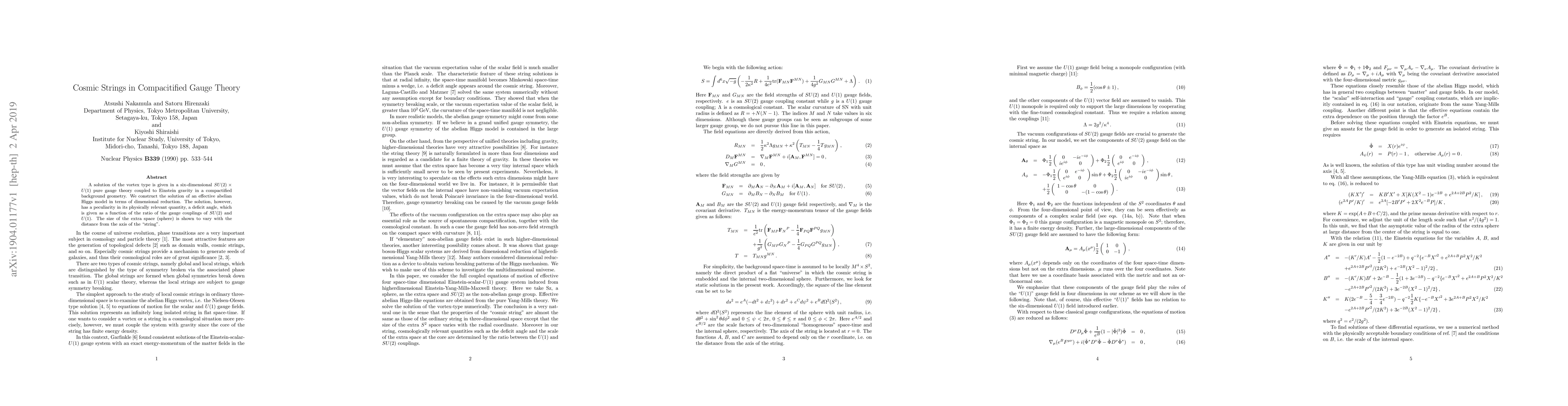 A solution of the vortex type is given in a six-dimensional $SU(2)\times U(1)$ pure gauge theory coupled to Einstein gravity in a compactified background geometry. We construct the solution of an effective abelian Higgs model in terms of dimensional reduction. The solution, however, has a peculiarity in its physically relevant quantity, a deficit angle, which is given as a function of the ratio of the gauge couplings of $SU(2)$ and $U(1)$. The size of the extra space (sphere) is shown to vary with the distance from the axis of the "string".