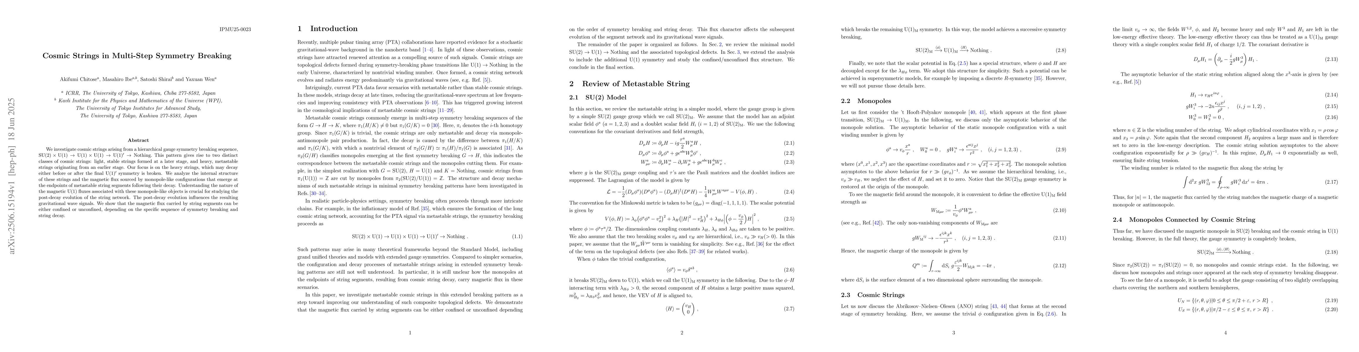 We investigate cosmic strings arising from a hierarchical gauge symmetry breaking sequence, $\mathrm{SU}(2) \times \mathrm{U}(1) \rightarrow \mathrm{U}(1) \times \mathrm{U}(1) \rightarrow \mathrm{U}(1)' \rightarrow \text{Nothing}$. This pattern gives rise to two distinct classes of cosmic strings: light, stable strings formed at a later stage, and heavy, metastable strings originating from an earlier stage. Our focus is on the heavy strings, which may decay either before or after the final $\mathrm{U}(1)'$ symmetry is broken. We analyze the internal structure of these strings and the magnetic flux sourced by monopole-like configurations that emerge at the endpoints of metastable string segments following their decay. Understanding the nature of the magnetic $\mathrm{U}(1)$ fluxes associated with these monopole-like objects is crucial for studying the post-decay evolution of the string network. The post-decay evolution influences the resulting gravitational wave signals. We show that the magnetic flux carried by string segments can be either confined or unconfined, depending on the specific sequence of symmetry breaking and string decay.