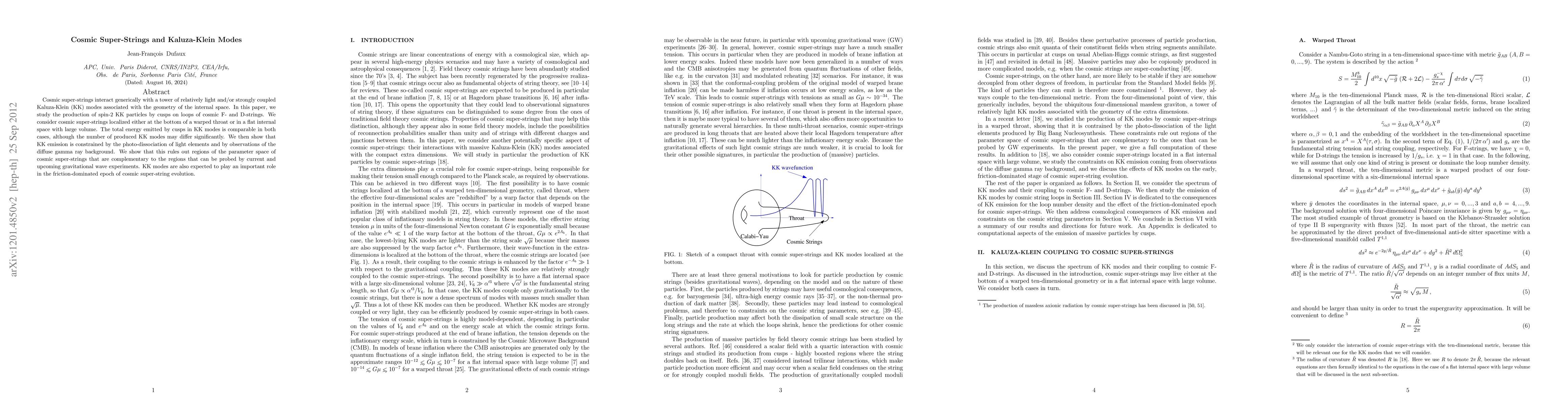 This paper investigates the interaction of cosmic super-strings with Kaluza-Klein modes, focusing on the production of spin-2 KK particles by cusps on cosmic strings. It finds comparable energy emission in different internal space geometries, while highlighting constraints from photo-dissociation and gamma-ray background observations, ruling out certain cosmic super-string parameter regions and emphasizing KK modes' role in cosmic evolution.