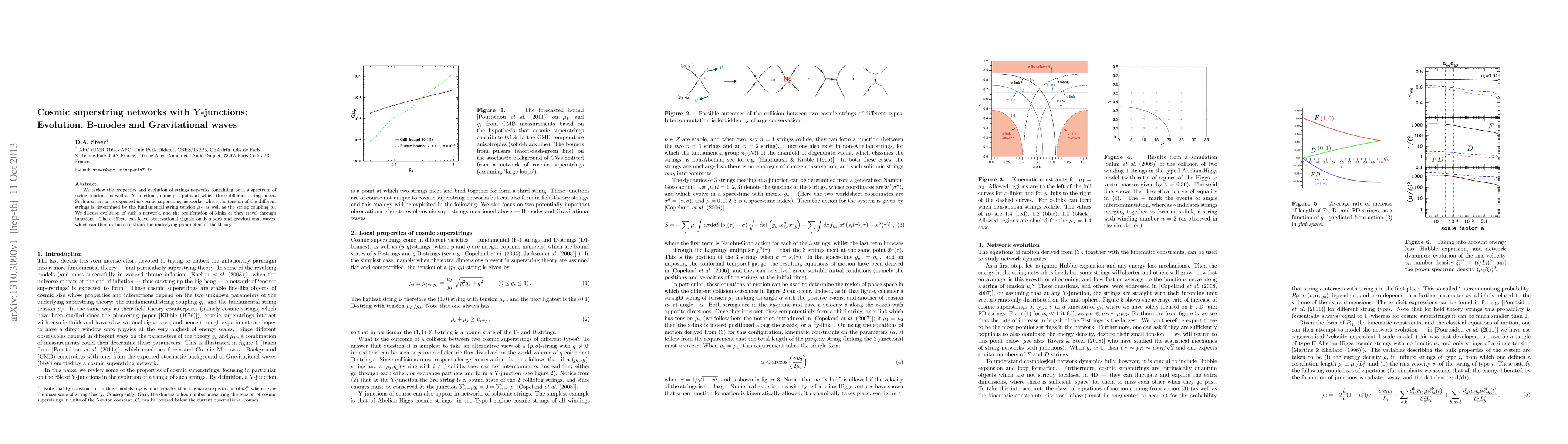 We review the properties and evolution of strings networks containing both a spectrum of string tensions as well as Y-junctions, namely a point at which three different strings meet. Such a situation is expected in cosmic superstring networks, where the tension of the different strings is determined by the fundamental string tension $\mu_F$ as well as the string coupling $g_s$. We discuss evolution of such a network, and the proliferation of kinks as they travel through junctions. These effects can leave observational signals on B-modes and gravitational waves, which can then in turn constrain the underlying parameters of the theory.