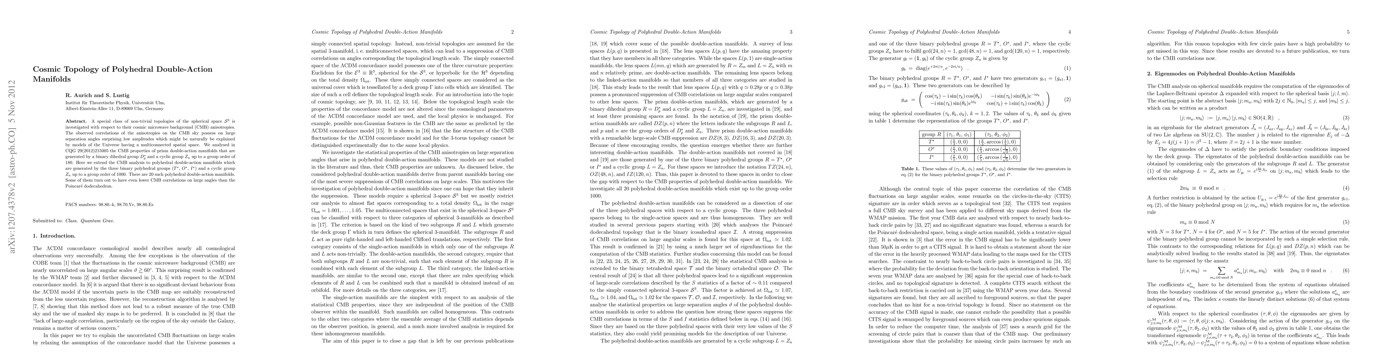 This paper explores the cosmic microwave background (CMB) anisotropies of polyhedral double-action manifolds, extending previous analysis of prism manifolds. It finds that certain polyhedral manifolds exhibit surprisingly low CMB correlation amplitudes on large angles, suggesting a multiconnected spatial universe.
