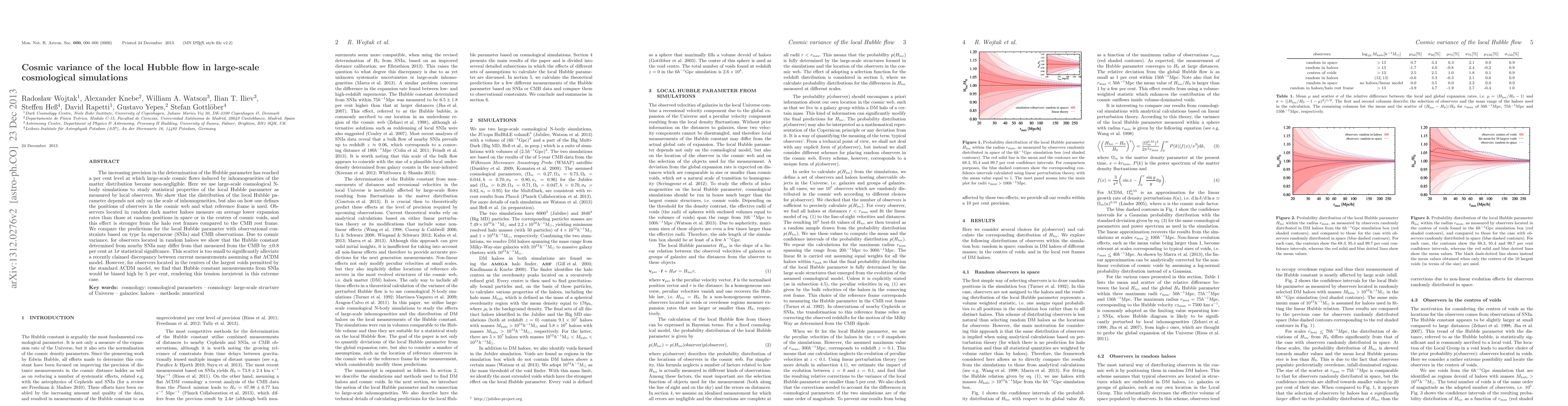 The increasing precision in the determination of the Hubble parameter has reached a per cent level at which large-scale cosmic flows induced by inhomogeneities of the matter distribution become non-negligible. Here we use large-scale cosmological N-body simulations to study statistical properties of the local Hubble parameter as measured by local observers. We show that the distribution of the local Hubble parameter depends not only on the scale of inhomogeneities, but also on how one defines the positions of observers in the cosmic web and what reference frame is used. Observers located in random dark matter haloes measure on average lower expansion rates than those at random positions in space or in the centres of cosmic voids, and this effect is stronger from the halo rest frames compared to the CMB rest frame. We compare the predictions for the local Hubble parameter with observational constraints based on type Ia supernovae (SNIa) and CMB observations. Due to cosmic variance, for observers located in random haloes we show that the Hubble constant determined from nearby SNIa may differ from that measured from the CMB by 0.8 per cent at 1sigma statistical significance. This scatter is too small to significantly alleviate a recently claimed discrepancy between current measurements assuming a flat LCDM model. However, for observers located in the centres of the largest voids permitted by the standard LCDM model, we find that Hubble constant measurements from SNIa would be biased high by 5 per cent, rendering this tension inexistent in this extreme case.