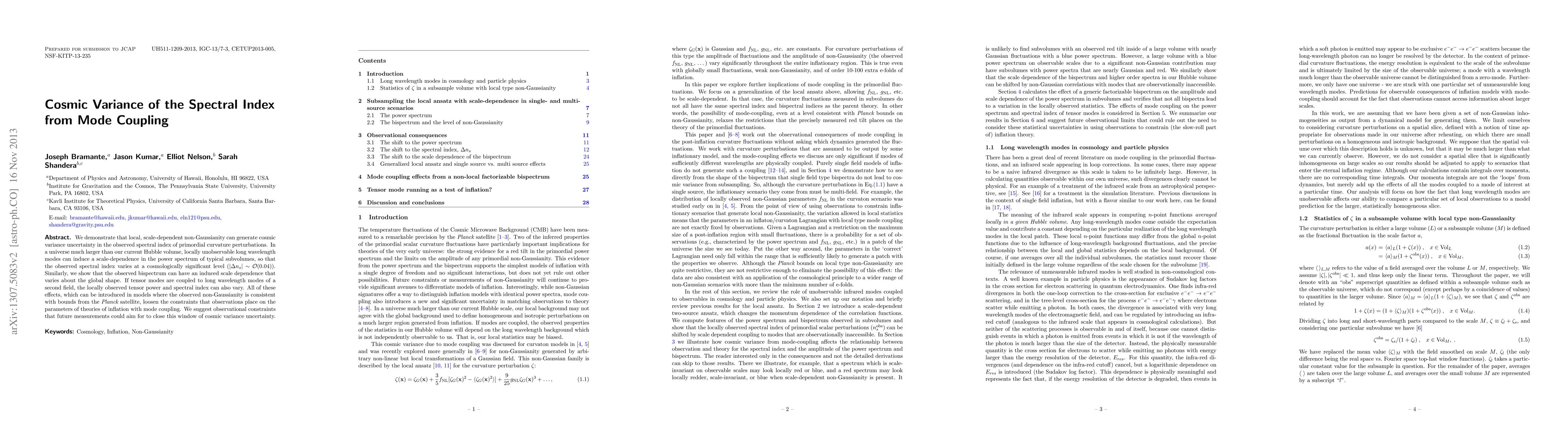 We demonstrate that local, scale-dependent non-Gaussianity can generate cosmic variance uncertainty in the observed spectral index of primordial curvature perturbations. In a universe much larger than our current Hubble volume, locally unobservable long wavelength modes can induce a scale-dependence in the power spectrum of typical subvolumes, so that the observed spectral index varies at a cosmologically significant level (|\Delta ns | ~ O(0.04)). Similarly, we show that the observed bispectrum can have an induced scale dependence that varies about the global shape. If tensor modes are coupled to long wavelength modes of a second field, the locally observed tensor power and spectral index can also vary. All of these effects, which can be introduced in models where the observed non-Gaussianity is consistent with bounds from the Planck satellite, loosen the constraints that observations place on the parameters of theories of inflation with mode coupling. We suggest observational constraints that future measurements could aim for to close this window of cosmic variance uncertainty.