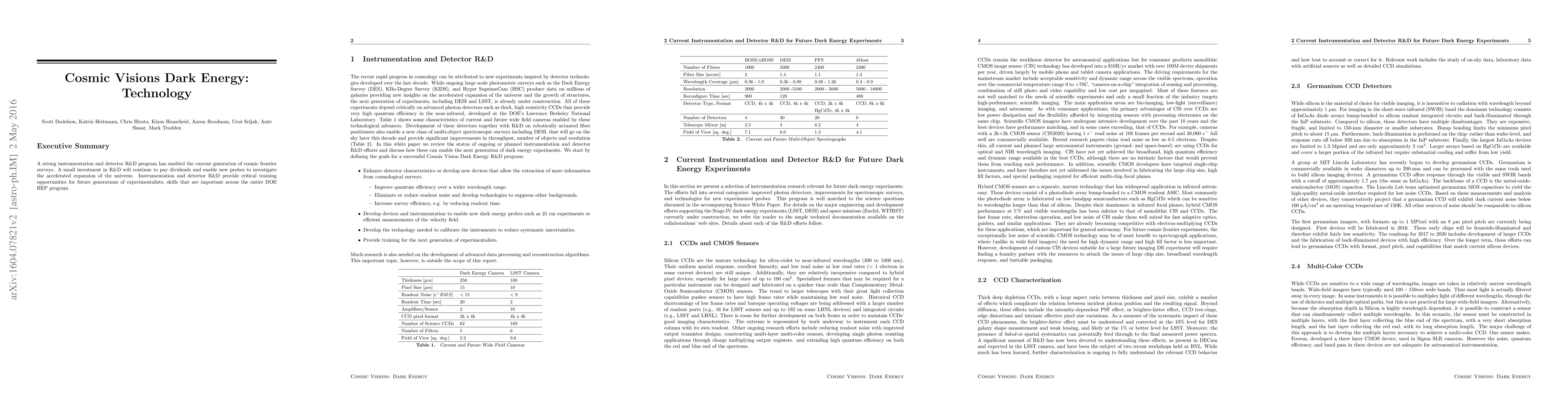 A strong instrumentation and detector R&D program has enabled the current generation of cosmic frontier surveys. A small investment in R&D will continue to pay dividends and enable new probes to investigate the accelerated expansion of the universe. Instrumentation and detector R&D provide critical training opportunities for future generations of experimentalists, skills that are important across the entire Department of Energy High Energy Physics program.