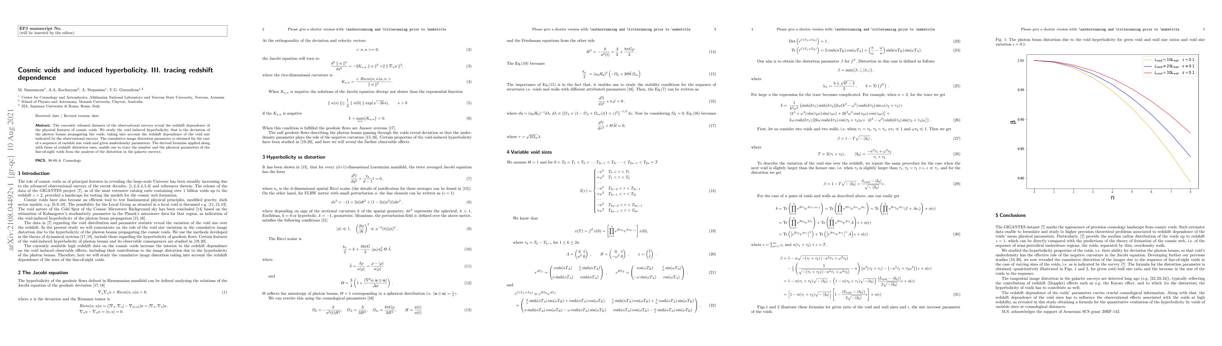 Researchers studied how cosmic voids affect light passing through them, accounting for their size changes with redshift, to better understand voids in the universe. They developed formulas to track voids from galaxy survey distortions.
