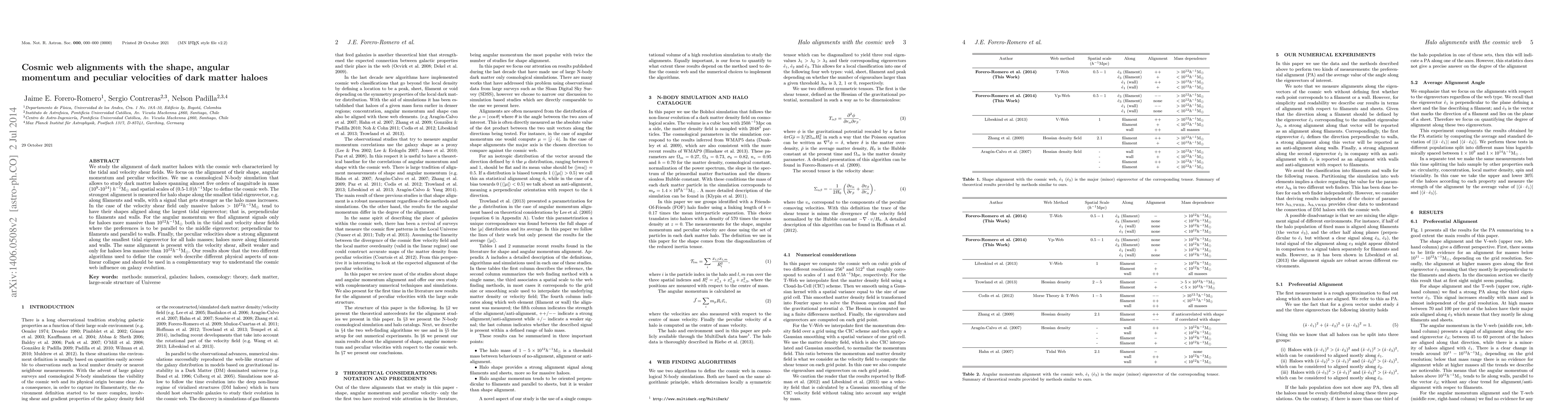 This paper investigates the alignment of dark matter halo shapes, angular momentum, and peculiar velocities with the cosmic web's tidal and velocity shear fields using a cosmological N-body simulation. It finds that halo shapes align strongly with filaments and walls, with alignment becoming stronger for more massive halos, while angular momentum and peculiar velocities also show alignment, particularly for halos above $10^{12}$ $h^{-1}$ $M_{\odot}$.