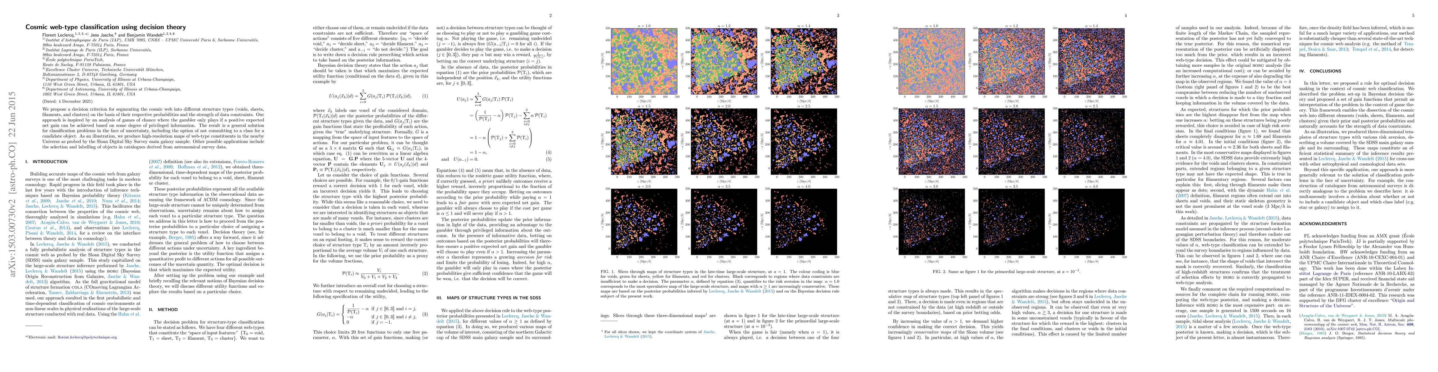 This research proposes a decision criterion for classifying cosmic web structures as voids, sheets, filaments, and clusters based on their probabilities and data constraints.