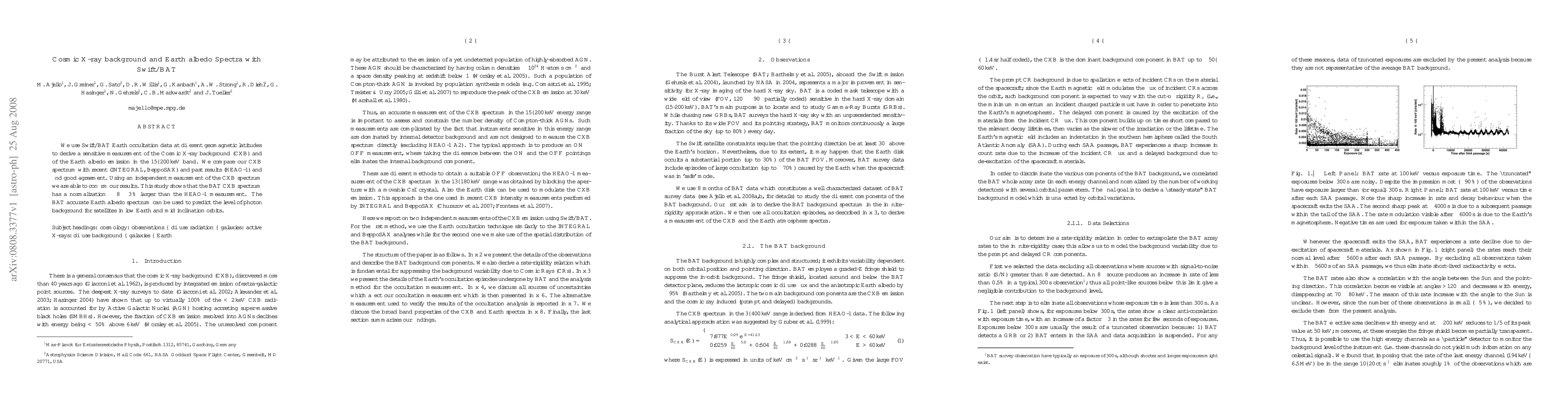 We use Swift/BAT Earth occultation data at different geomagnetic latitudes to derive a sensitive measurement of the Cosmic X-ray background (CXB) and of the Earth albedo emission in the 15--200 keV band. We compare our CXB spectrum with recent (INTEGRAL, BeppoSAX) and past results (HEAO-1) and find good agreement. Using an independent measurement of the CXB spectrum we are able to confirm our results. This study shows that the BAT CXB spectrum has a normalization ~8(+/-3)% larger than the HEAO-1 measurement. The BAT accurate Earth albedo spectrum can be used to predict the level of photon background for satellites in low Earth and mid inclination orbits.