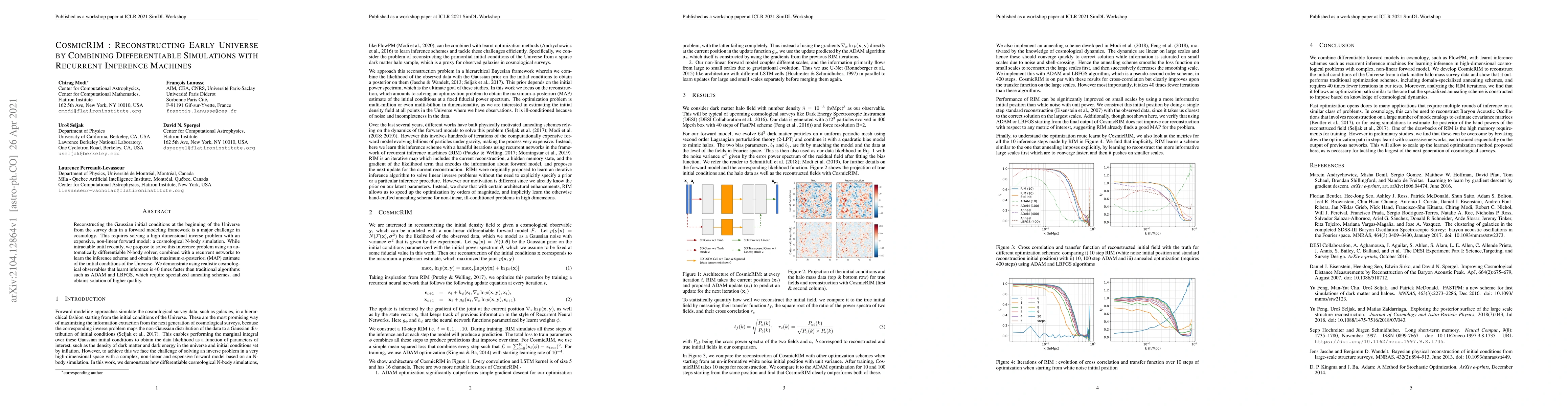 Reconstructing the Gaussian initial conditions at the beginning of the Universe from the survey data in a forward modeling framework is a major challenge in cosmology. This requires solving a high dimensional inverse problem with an expensive, non-linear forward model: a cosmological N-body simulation. While intractable until recently, we propose to solve this inference problem using an automatically differentiable N-body solver, combined with a recurrent networks to learn the inference scheme and obtain the maximum-a-posteriori (MAP) estimate of the initial conditions of the Universe. We demonstrate using realistic cosmological observables that learnt inference is 40 times faster than traditional algorithms such as ADAM and LBFGS, which require specialized annealing schemes, and obtains solution of higher quality.