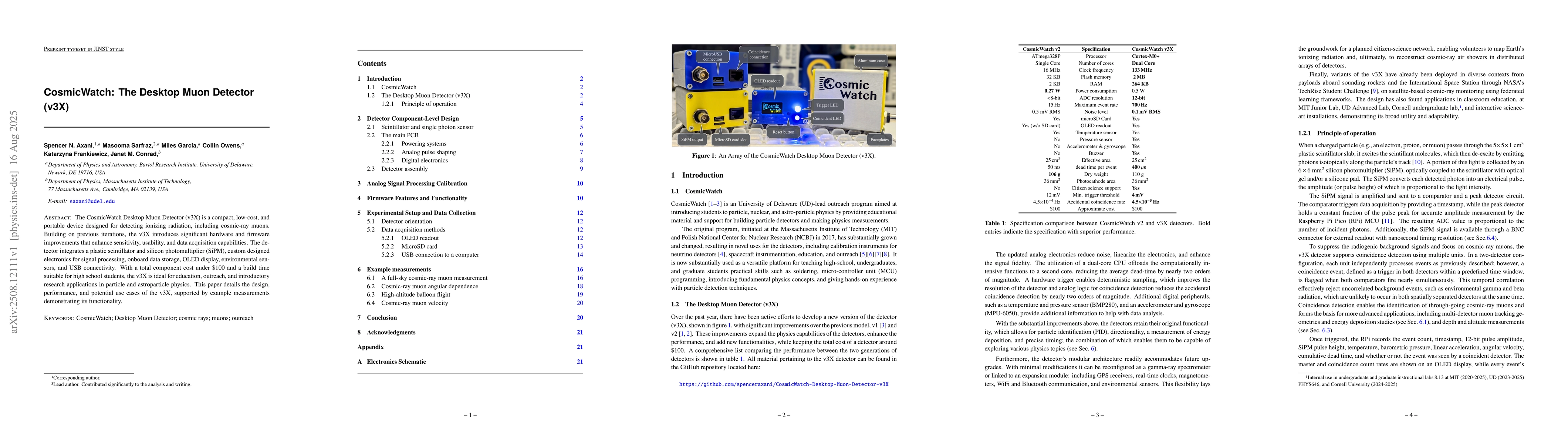 The CosmicWatch Desktop Muon Detector (v3X) is a compact, low-cost, and portable device designed for detecting ionizing radiation, including cosmic-ray muons. Building on previous iterations, the v3X introduces significant hardware and firmware improvements that enhance sensitivity, usability, and data acquisition capabilities. The detector integrates a plastic scintillator and silicon photomultiplier (SiPM), custom designed electronics for signal processing, onboard data storage, OLED display, environmental sensors, and USB connectivity. With a total component cost under \$100 and a build time suitable for high school students, the v3X is ideal for education, outreach, and introductory research applications in particle and astroparticle physics. This paper details the design, performance, and potential use cases of the v3X, supported by example measurements demonstrating its functionality.