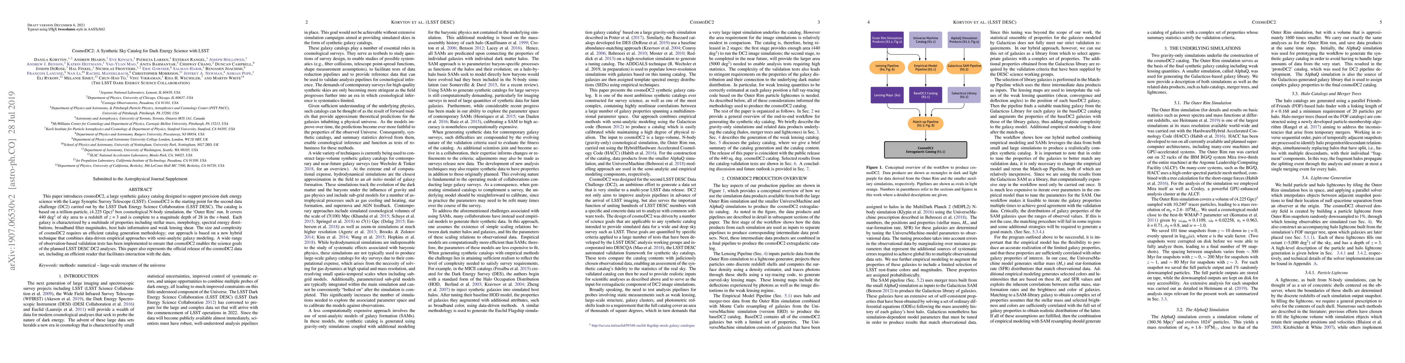 CosmoDC2 is a synthetic galaxy catalog created to support dark energy science with the LSST, based on a large cosmological N-body simulation. It combines empirical data-driven methods with semi-analytic galaxy modeling to ensure it meets the LSST Dark Energy Science Collaboration's science goals.