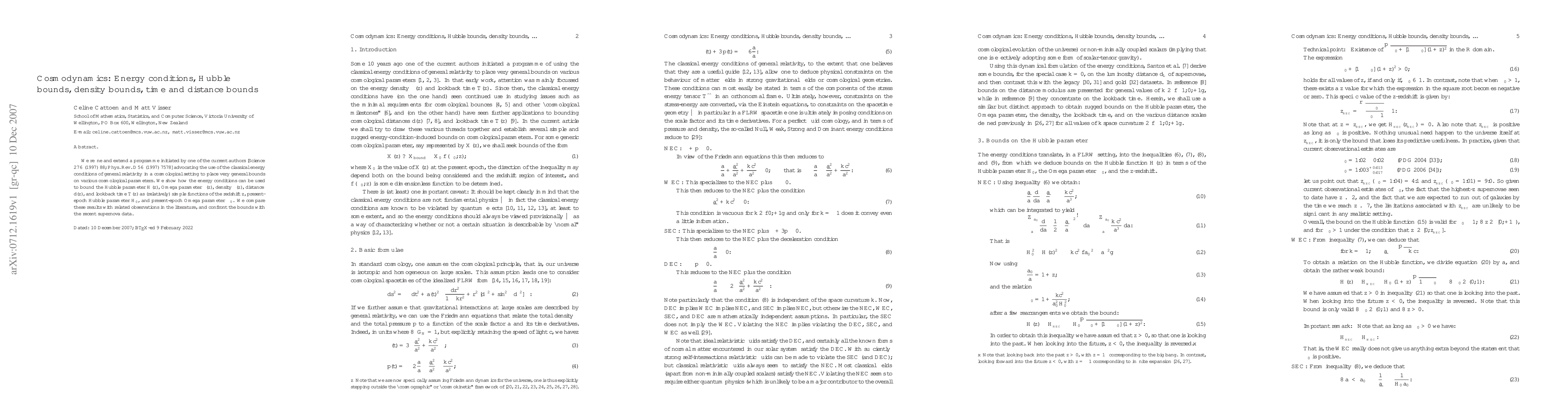 This paper refines a program using classical energy conditions from general relativity to establish bounds on cosmological parameters, including Hubble, density, and distance parameters. It demonstrates how these conditions relate to redshift, present-epoch Hubble, and Omega parameters, and compares the derived bounds with observational data, particularly recent supernova data.