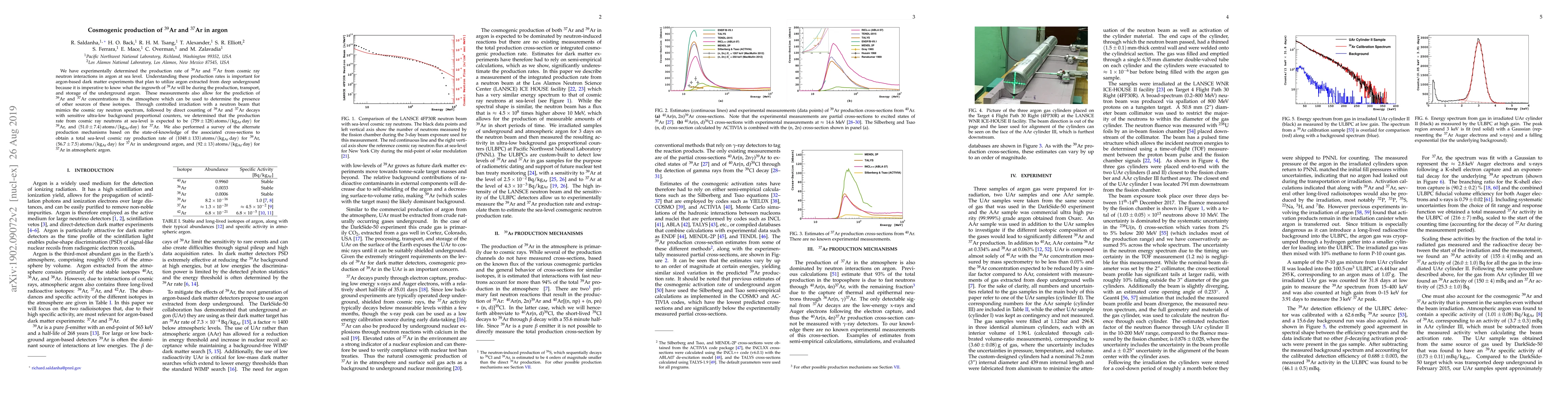 We have experimentally determined the production rate of $^{39}$Ar and $^{37}$Ar from cosmic ray neutron interactions in argon at sea level. Understanding these production rates is important for argon-based dark matter experiments that plan to utilize argon extracted from deep underground because it is imperative to know what the ingrowth of $^{39}$Ar will be during the production, transport, and storage of the underground argon. These measurements also allow for the prediction of $^{39}$Ar and $^{37}$Ar concentrations in the atmosphere which can be used to determine the presence of other sources of these isotopes. Through controlled irradiation with a neutron beam that mimics the cosmic ray neutron spectrum, followed by direct counting of $^{39}$Ar and $^{37}$Ar decays with sensitive ultra-low background proportional counters, we determined that the production rate from cosmic ray neutrons at sea-level is expected to be $(759 \pm 128)$ atoms/kg$_\text{Ar}$/day for $^{39}$Ar, and $(51.0 \pm 7.4)$ atoms/kg$_\text{Ar}$/day for $^{37}$Ar. We also performed a survey of the alternate production mechanisms based on the state-of-knowledge of the associated cross-sections to obtain a total sea-level cosmic ray production rate of $(1048 \pm 133)$ atoms/kg$_\text{Ar}$/day for $^{39}$Ar, $(56.7 \pm 7.5)$ atoms/kg$_\text{Ar}$/day for $^{37}$Ar in underground argon, and $(92 \pm 13)$ atoms/kg$_\text{Ar}$/day for $^{37}$Ar in atmospheric argon.