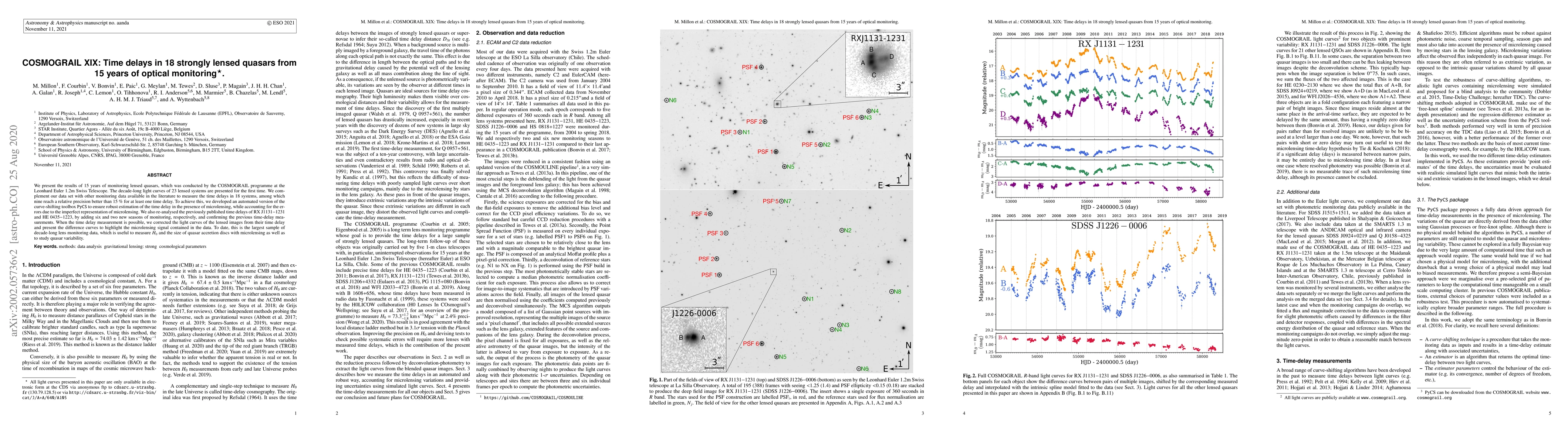The COSMOGRAIL program conducted 15 years of optical monitoring of lensed quasars using the Leonhard Euler 1.2m Swiss Telescope, presenting decade-long light curves for 23 systems. An automated version of PyCS was developed for robust time delay estimation, accounting for microlensing errors.