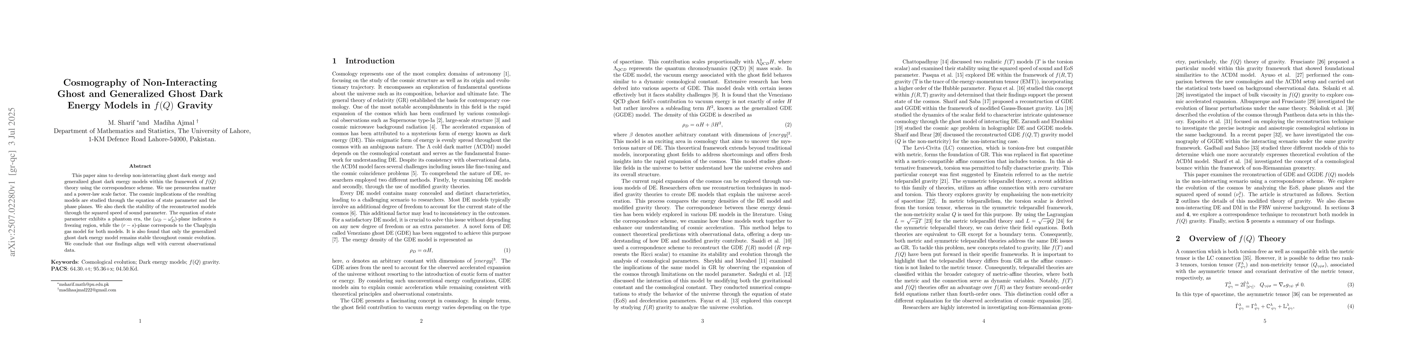 This paper aims to develop non-interacting ghost dark energy and generalized ghost dark energy models within the framework of $f(Q)$ theory using the correspondence scheme. We use pressureless matter and a power-law scale factor. The cosmic implications of the resulting models are studied through the equation of state parameter and the phase planes. We also check the stability of the reconstructed models through the squared speed of sound parameter. The equation of state parameter exhibits a phantom era, the $(\omega_{D}-\omega^{\prime}_{D})$-plane indicates a freezing region, while the $(r-s)$-plane corresponds to the Chaplygin gas model for both models. It is also found that only the generalized ghost dark energy model remains stable throughout cosmic evolution. We conclude that our findings align well with current observational data.