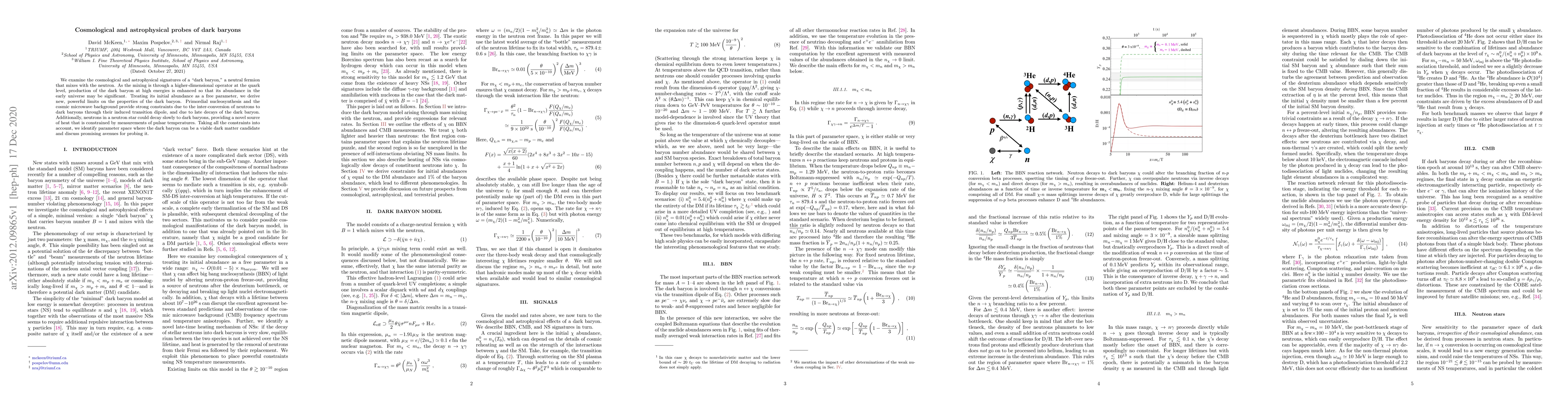 This paper explores the cosmological and astrophysical implications of "dark baryons," neutral fermions that mix with neutrons, and derives stringent limits on their properties. It finds that dark baryons could affect primordial nucleosynthesis, the cosmic microwave background, and neutron star decay, providing a viable dark matter candidate under certain conditions.