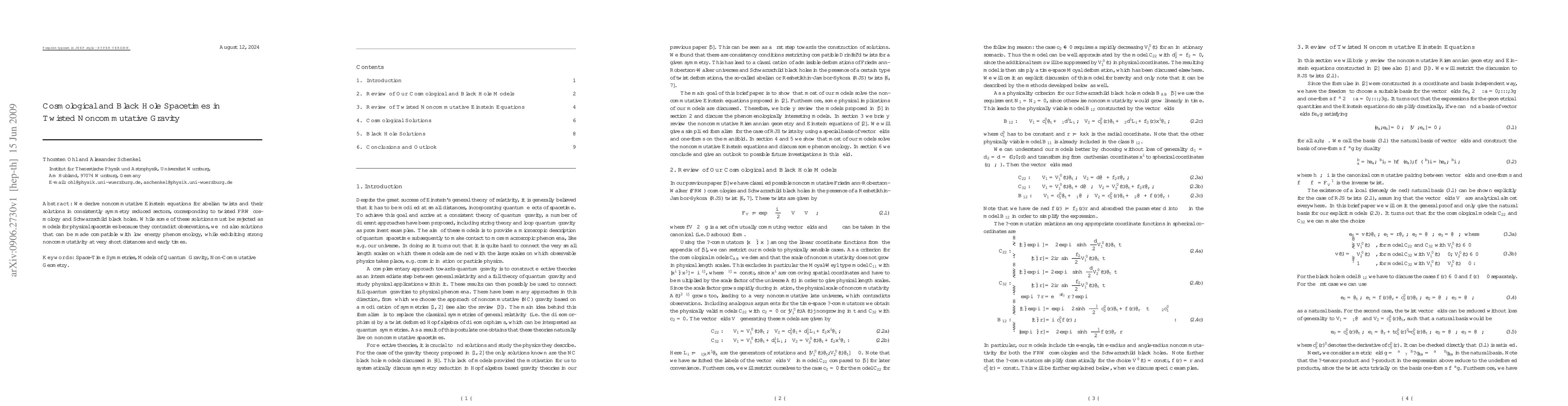 This paper derives noncommutative Einstein equations for abelian twists and explores their solutions in symmetry-reduced sectors, including twisted FRW cosmology and Schwarzschild black holes. Some solutions are inconsistent with observations, but others are compatible with low-energy phenomenology and show strong noncommutativity at very short distances and early times.