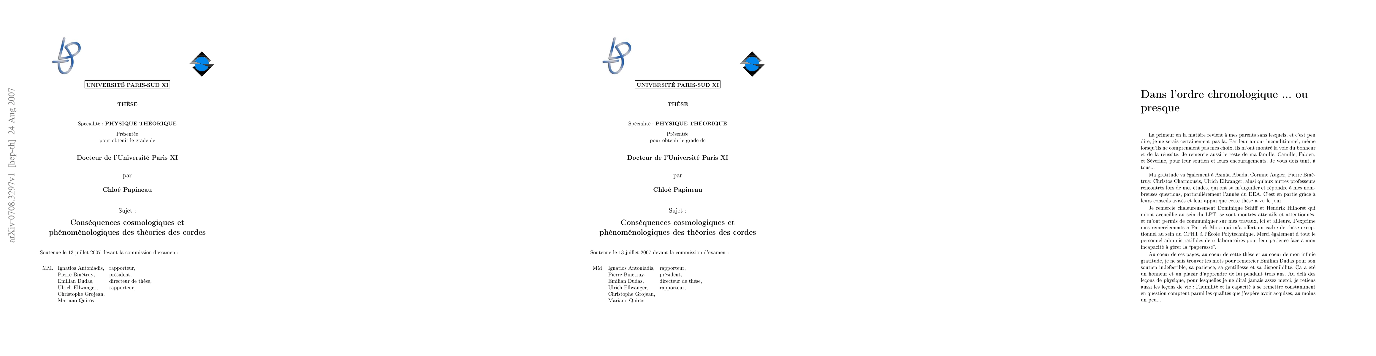 The Standard Model is the low-energy limit of a microscopic theory which includes extra dimensions and new symmetries. A part of my thesis consisted in constructing a new class of models with two extra dimensions. We showed that these models can drive a dynamical symmetry breaking in four dimensions. In particular, they are dual to models with four fermions which need a non-perturbative treatment. We also studied supersymmetry and its local version, supergravity, in string theory inspired models with ten dimensions. Extra fields called moduli are present after dimensional reduction and are generically flat directions of the total potential. We constructed a model of stabilisation for the moduli in which the supersymmetry breaking yields a light gravitino mass of order 10 TeV. The cosmological constant can be adjusted to be very small. Such models exhibit a promising phenomenology.