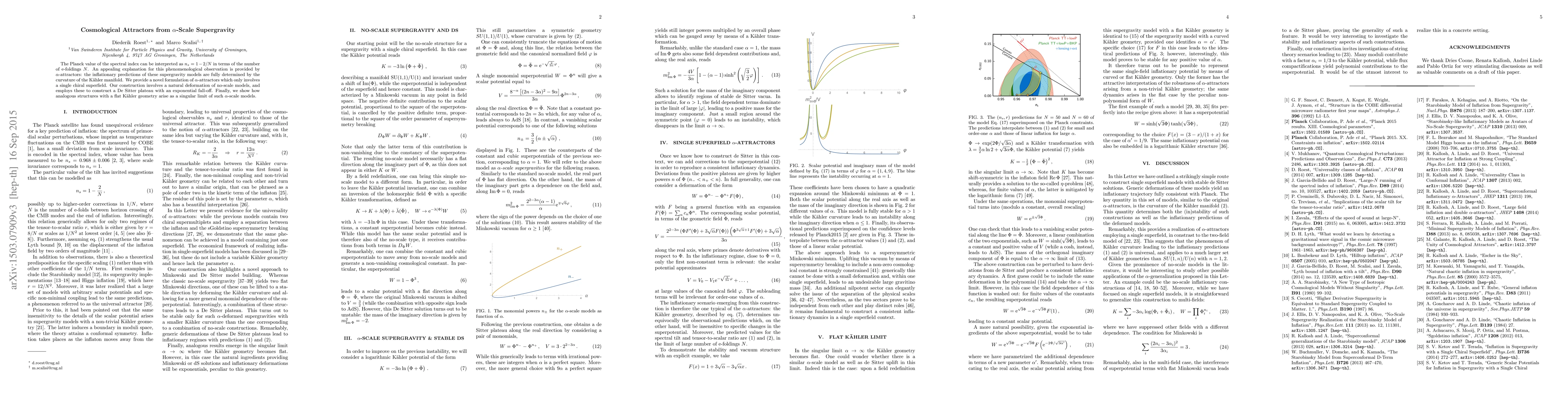 This paper proposes a novel formulation of $\alpha$-attractors in supergravity, explaining the Planck value of the spectral index through the number of e-foldings. It constructs a De Sitter plateau using a single chiral superfield, deforming no-scale models to achieve an exponential fall-off, and explores the emergence of flat Kahler geometries as a singular limit.