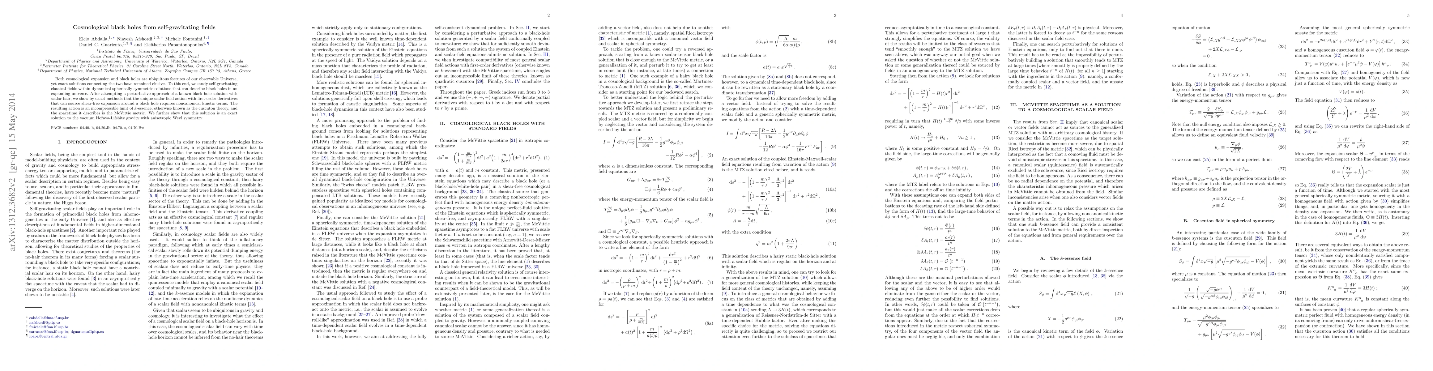 This paper explores the connection between cosmological expansion and black holes by studying self-gravitating classical fields in dynamical spherically symmetric solutions. It reveals that the unique scalar field action with first-order derivatives, which can source shear-free expansion around a black hole, requires noncanonical kinetic terms, leading to the McVittie metric and an exact solution in vacuum Ho\v{r}ava-Lifshitz gravity.