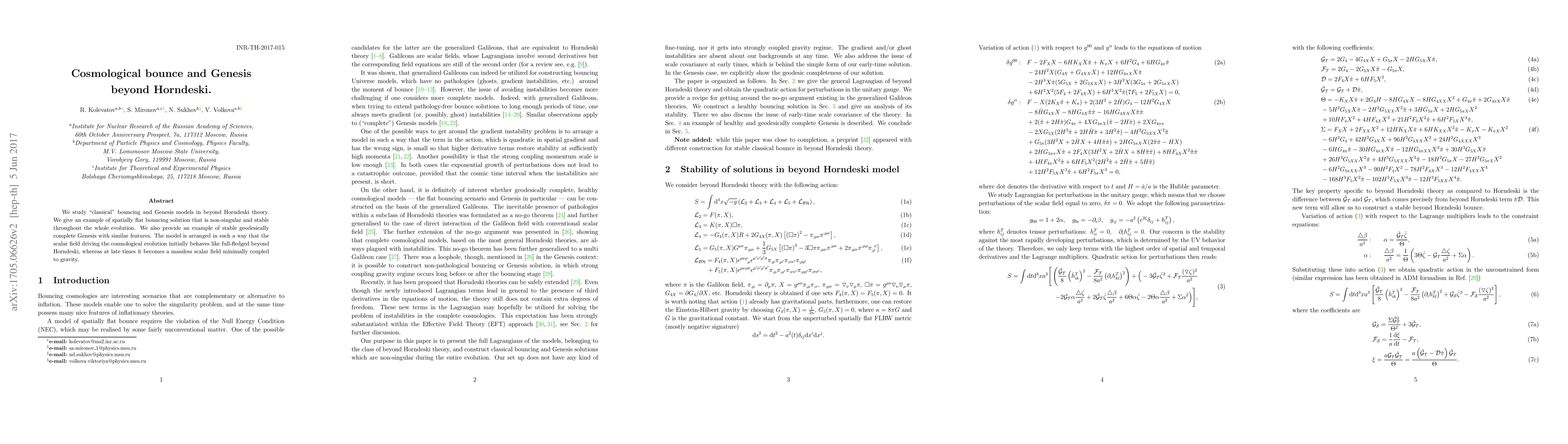 We study a "classical" bouncing scenario in beyond Horndeski theory. We give an example of spatially flat bouncing solution that is non-singular and stable throughout the whole evolution. The model is arranged in such a way that the scalar field driving the cosmological evolution initially behaves like full-fledged beyond Horndeski, whereas at late times it becomes a massless scalar field minimally coupled to gravity.