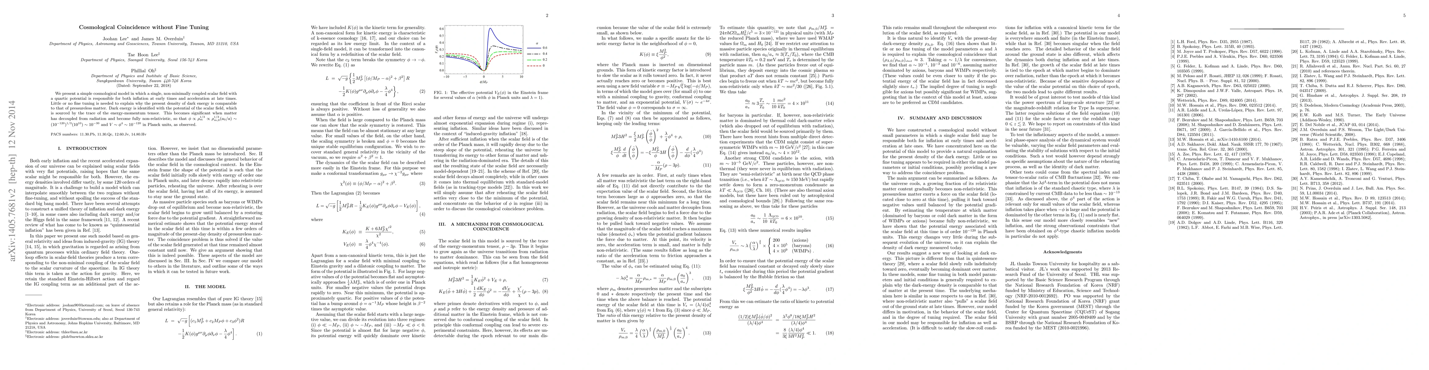 We present a simple cosmological model in which a single, non-minimally coupled scalar field with a quartic potential is responsible for both inflation at early times and acceleration at late times. Little or no fine tuning is needed to explain why the present density of dark energy is comparable to that of pressureless matter. Dark energy is identified with the potential of the scalar field, which is sourced by the trace of the energy-momentum tensor. This becomes significant when matter has decoupled from radiation and become fully non-relativistic, so that $\phi\propto\rho_m^{1/3}\propto\rho_{m,0}^{1/3}(a_0/a)\sim(10^{-120})^{1/3}(10^{10})\sim10^{-30}$ and $V\sim\phi^4\sim10^{-120}$ in Planck units, as observed.