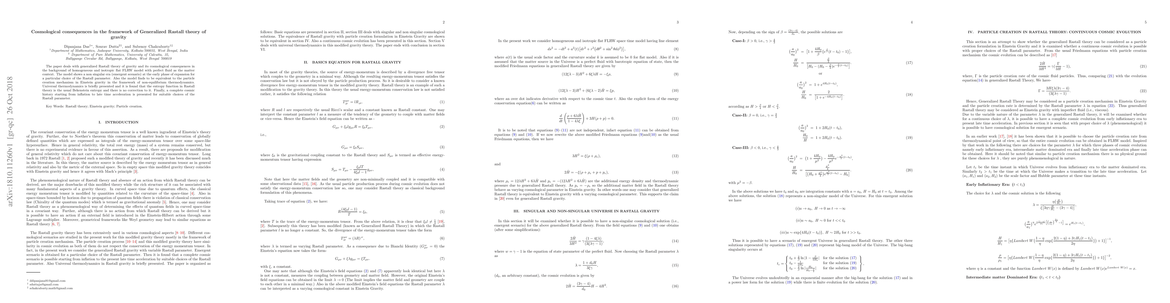 This paper explores the cosmological implications of the generalized Rastall theory of gravity, revealing a non-singular emergent era in the early universe and equivalence to particle creation in Einstein gravity. It concludes with a comprehensive cosmic history from inflation to late-time acceleration, without entropy corrections.