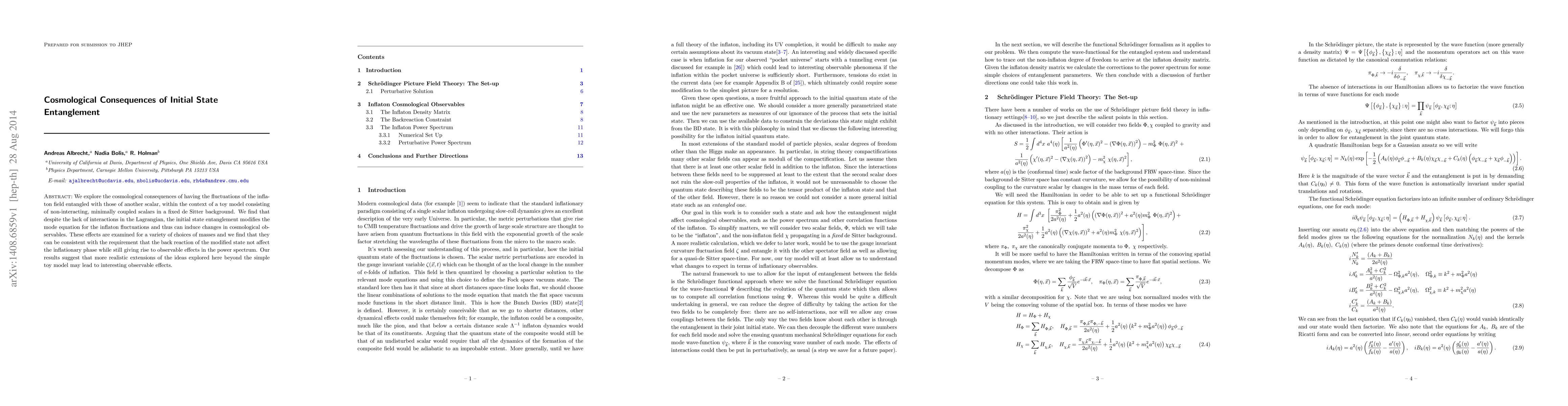 We explore the cosmological consequences of having the fluctuations of the inflaton field entangled with those of another scalar, within the context of a toy model consisting of non-interacting, minimally coupled scalars in a fixed de Sitter background. We find that despite the lack of interactions in the Lagrangian, the initial state entanglement modifies the mode equation for the inflaton fluctuations and thus can induce changes in cosmological observables. These effects are examined for a variety of choices of masses and we find that they can be consistent with the requirement that the back reaction of the modified state not affect the inflationary phase while still giving rise to observable effects in the power spectrum. Our results suggest that more realistic extensions of the ideas explored here beyond the simple toy model may lead to interesting observable effects.