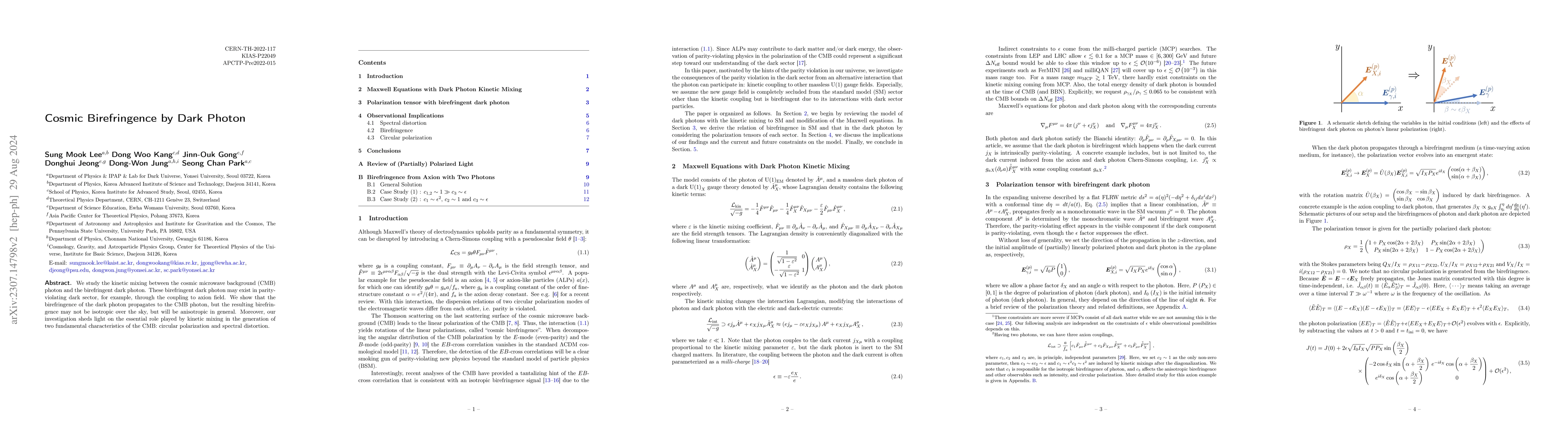 This paper investigates the kinetic mixing between the CMB photon and a birefringent dark photon, revealing that it induces non-uniform cosmic birefringence. It highlights the significant role of kinetic mixing in generating circular polarization and spectral distortion in the CMB.