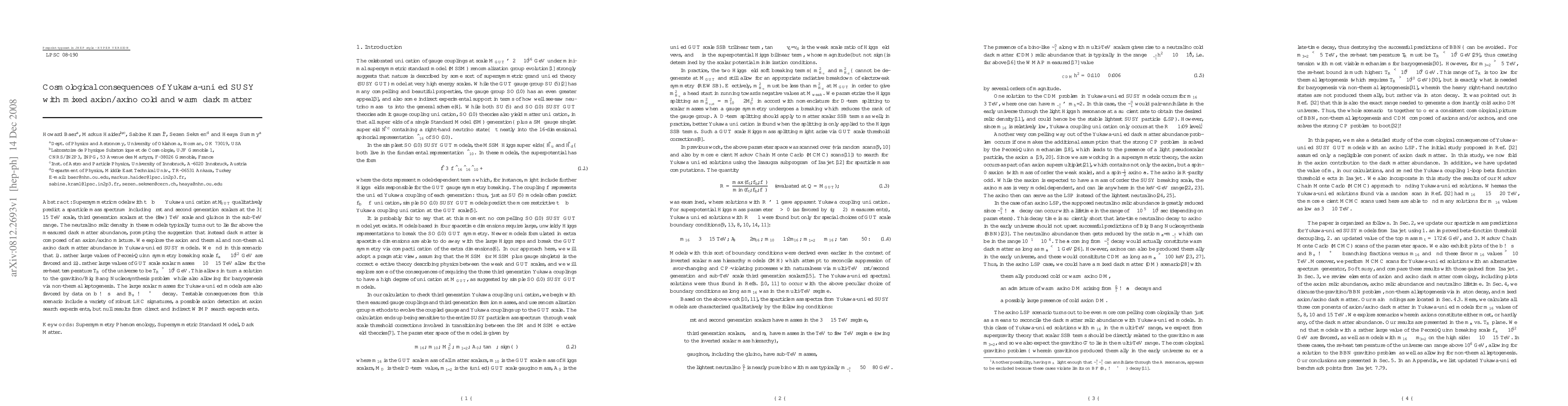 This paper investigates supersymmetric models with Yukawa unification, proposing that dark matter consists of a mixture of axions and axinos. It finds that large Peccei-Quinn symmetry breaking scales and high GUT scale scalar masses are favored, allowing for warm dark matter solutions and resolving issues like the gravitino/Big Bang Nucleosynthesis problem.