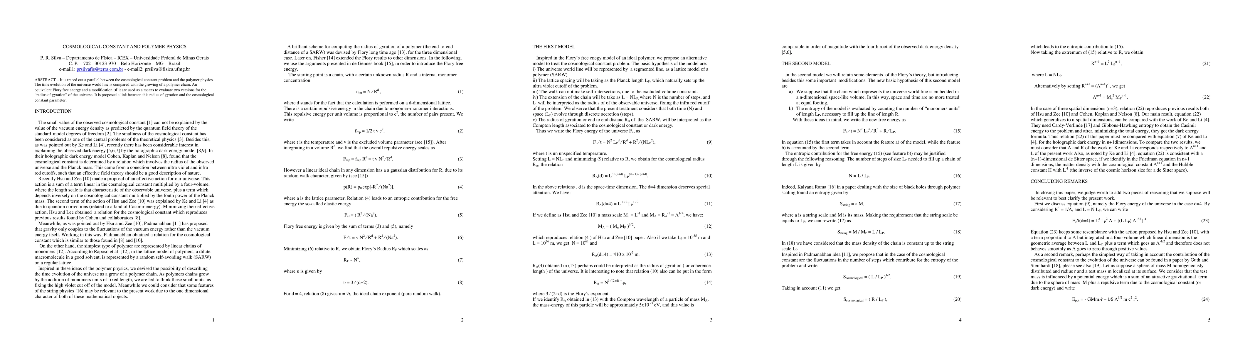 It is traced out a parallel between the cosmological constant problem and the polymer physics. The time evolution of the universe world line is compared with the growing of a polymer chain. An equivalent Flory free energy and a modification of it are used as a means to evaluate two versions for the radius of gyration of the universe. It is proposed a link between this radius of gyration and the cosmological constant parameter.